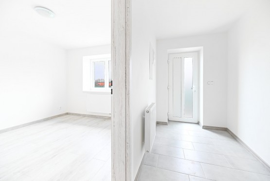 Nové omítky, nová instalace elektřiny v mědi, nové rozvody topení, odpadů a vody.