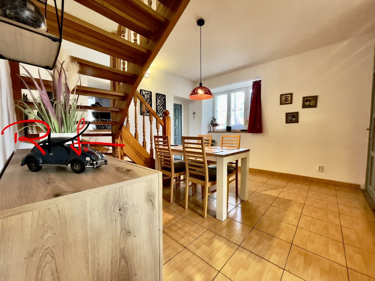 Přízemí: Vstupní chodbou se dostaneme do jídelny spojenou s kuchyňským koutem, který je vybaven spotřebiči (varná deska, lednice, myčka, trouba). Z této společné místnosti následuje vstup do obývacího pokoje, koupelny a patra. Jídelna a koupelna vybavena podlahovým vytápěním. Obývací pokoj na západní stranu Vám zpříjemní odpočinek s rodinou, kde mimo jiné v zimních měsících určitě oceníte krbová kamna. Z tohoto pokoje máte také k dispozici vstup do technické místnosti.