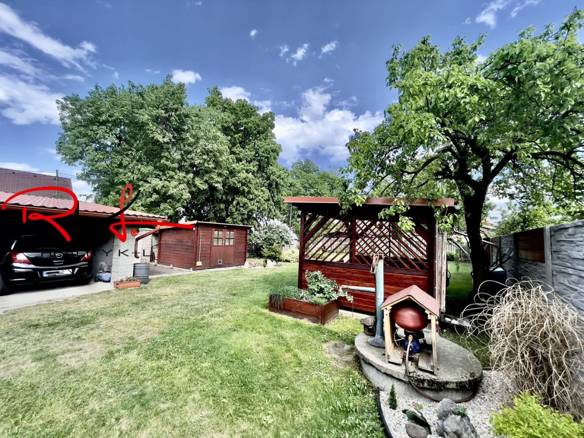 Okolí domu je velice dobře udržováno, zejména zahrada. Garáž pro jeden automobil, grilovací koutek, posezení pod pergolou.