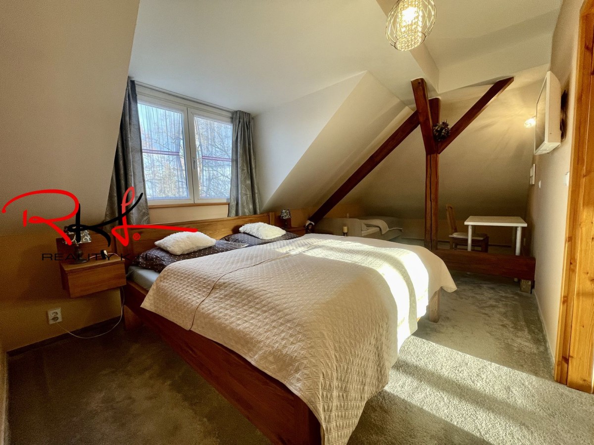 Výhled do obou části zahrady je samozřejmostí. Patro nabízí 49 m2.