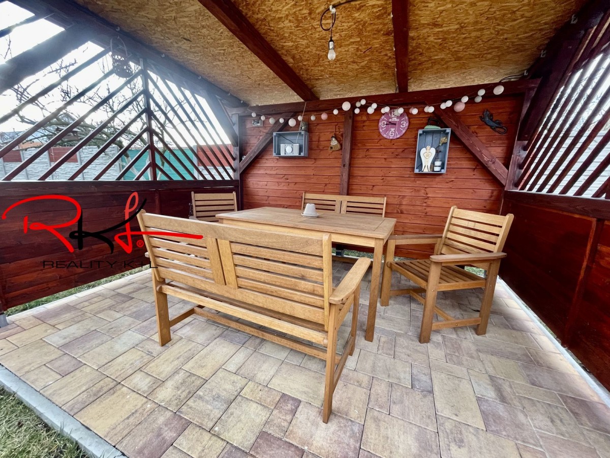 Okolí domu je velice dobře udržováno, zejména zahrada. Garáž pro jeden automobil, grilovací koutek, posezení pod pergolou.