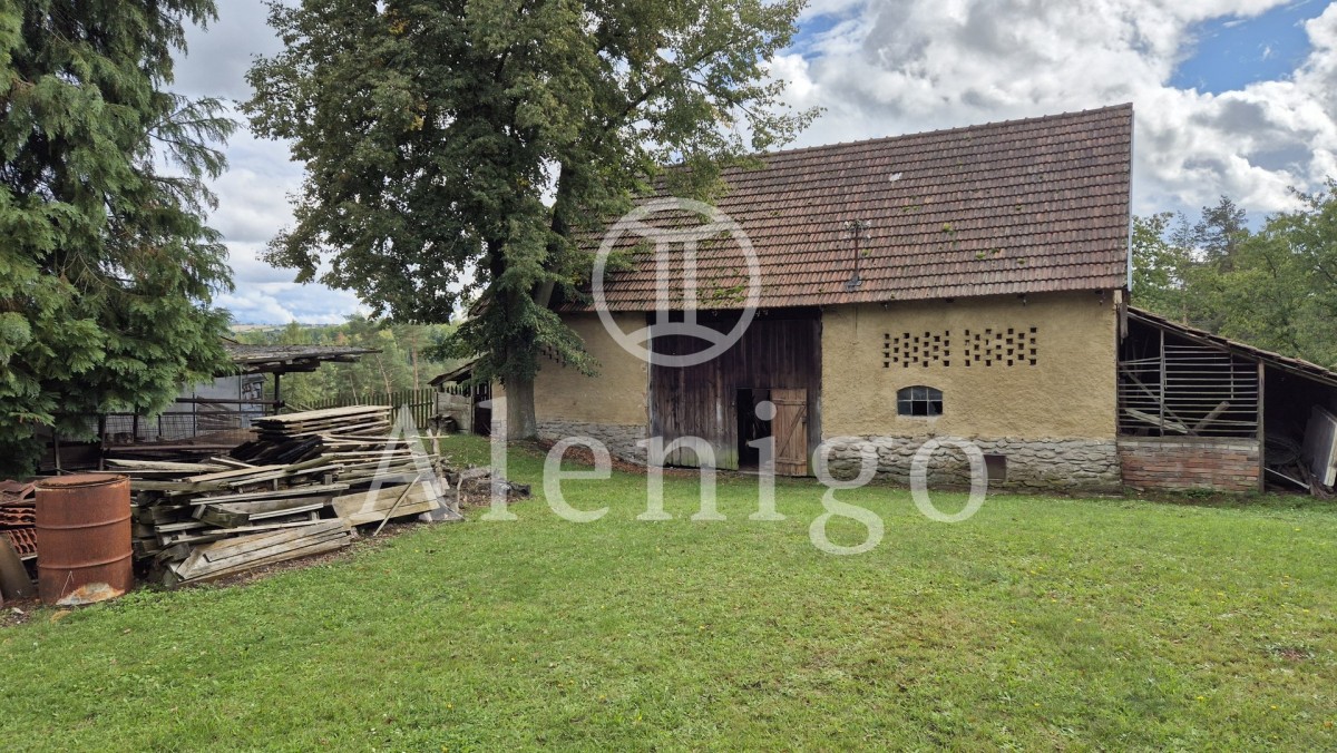 Nabízená nemovitost se skládá ze 3 na sebe navazujících pozemků o celkové výměře 2 823 m2, součástí pozemku je dům s obytnou a hospodářskou částí, samostatně stojící stodola a plechová garáž.