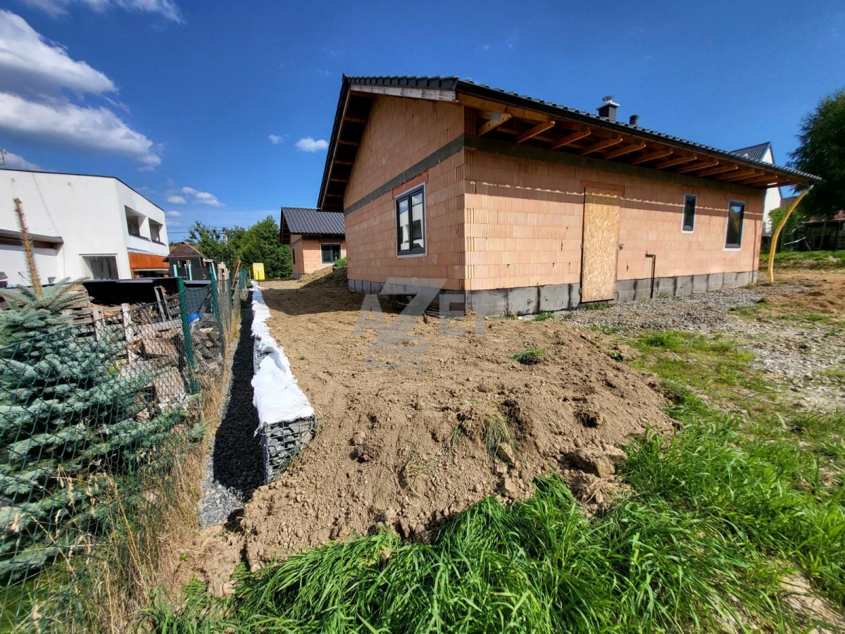 Dům je těsně před dokončením a kolaudací, případnému zájemci může zhotovitel na přání provést finální výběry zařízení a materiálů, tzn. dokončit realizaci koupelny a sociální zařízení WC, interiérových dveří a podlah. Přičemž již byly instalovány kvalitní okna(trojskla), která zajišťují vynikající tepelné a zvukové izolační vlastnosti. Jako stavební materiál byly použity 25 cm broušené cihly Heluz 2in1, které jsou zárukou dlouhé životnosti a výborné energetické účinnosti. Střešní krytina byla vybrána z osvědčených tašek Röben, které nabídnou nejen estetický vzhled, ale i spolehlivou ochranu proti povětrnostním vlivům. Půdní prostory nabídnou dostatek úložného prostoru.