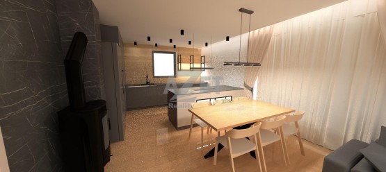 Tento rodinný dům je projektován s ohledem na efektivní využití prostoru a komfortní rodinné bydlení. Dominantou domu je prostorný obývací pokoj s kuchyňským koutem o rozloze 32 m (8 m x 4 m), který je prosvětlen velkým francouzským oknem a terasovými dveřmi. Toto otevřené uspořádání poskytuje přirozené světlo po celý den a nabízí přímý přístup na navazující terasu. Zájemce si také může za příplatek nechat zhotovit kuchyňskou linku na míru s ostrůvkem dle navržené dispozice nebo zvolit úplnou variantu dokončení stavby včetně interiéru na klíč. Včetně služeb bytového architekta zdarma.