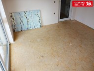 V patře je chodba 11, 5m2 se vstupem na terasu na jižní straně domu, pokoj 16, 3m2 s oknem na jih, koupelna 2, 5m2.