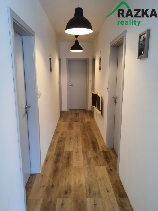 V domě se nachází prostorné zádveří, technická místnost, obývací pokoj s kuchyňským koutem, dva pokoje, ložnice s prostorem pro šatnu, koupelna, sociální zařízení WC.