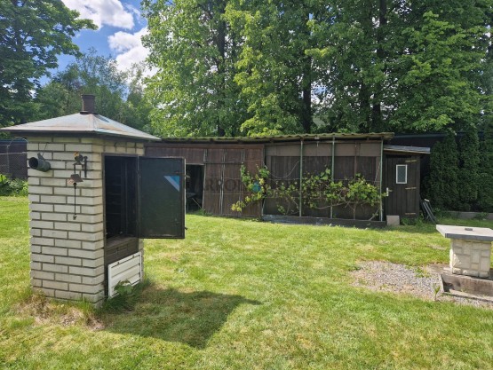 Součástí nemovitosti je rozlehlá a vzrostlá zahrada s několika stavbami - zahradní domek (lze využít jako chatu), prostorná kůlna na nářadí, skleník a záhony ideální pro vlastní pěstování, studna a další možnost parkování ze samostatné brány.