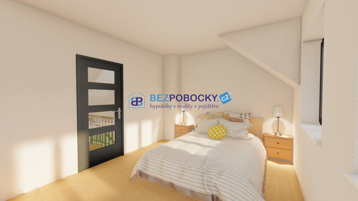 3. NP (třetí nadzemní patro) - chodba + schodiště, ložnice, koupelna, pokoj - celkem 37, 90 m2
