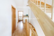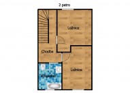 V patře domu jsou pak tři ložnice a velká koupelna s vanou a toaletou.
