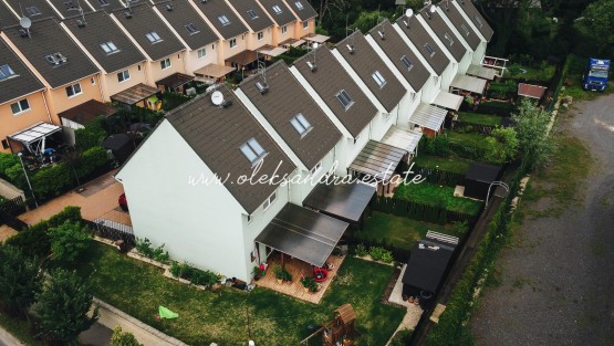 Řadový dům o celkové výměře 121m a dispozici ...e + kuchyňský kout">4+kk (dá se udělat 5+kk) je umístěn na pěkném, rovinatém pozemku o rozloze 151 m.