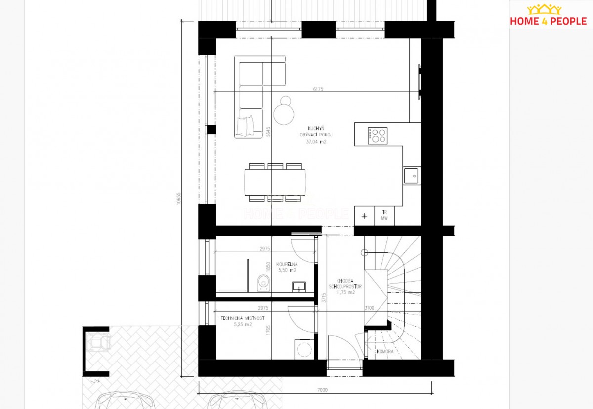 Cena včetně výstavby RD (rodinný dům), IS, příjezdové komunikace a DPH. . Zprostředkujeme Vám exkluzivní prodej projektu půldomu o velikosti 4+kk o podlahové výměře 118 m² v U...herském Brodě části Těšov. Součásti uvedené ceny, která již zahrnuje DPH je dům na klíč, inženýrské sítě, přístupová komunikace a připojené místo EDG (EON), mimo plynu, pozemek, parkovací stání před domem pro dvě auta, veškeré projektové práce a stavebního povolení. Pozemek (č. 3) o rozloze 569 m² je na klidném místě obce. Šíře pozemku je 10, 3 m. Dle územního plánu je pozemek veden a schválen pro rodinné bydlení. Jedná se o zděnou stavbu a nabízí se ve variantě na klíč. V projektu jsou možné variabilní úpravy dispozice (posuny příček či oken). Patrový dům je ideální pro 5 člennou rodinu s nízkými provozními náklady. Uvedená cena je za pozemek, kompletní stavbu domu v provedení na klíč, projektové dokumentace, vyřízení stavebního povolení, základové desky až po kolaudaci. V uvedené ceně můžete počítat také s finálními povrchovými úpravami exteriéru i interiéru, a to včetně elektroinstalací, sanitárního vybavení s bateriemi, interiérovými dveřmi včetně obložek a vytápění bude řešeno teplovodním podlahovým topením v kombinaci tepelného čerpadla se 180L zásobníkem na teplou vodu. Dle dohody změníme systém vytápění nebo vystavíme komín pro krbové kamna nebo pro využití krbové vložky. Kryté garážové stání spojené s domem nebo venkovní krytou či nekrytou terasu za příplatek. Pro náročnější klienty máme nabídku nadstandardního vybavení chytré domácnosti, klimatizaci, externí žaluzie, rolety, rekuperaci nebo fotovoltaiku. Doba výstavby cca 12 - 13 měsíců od vydání stavebního povolení a stavbu zahájíme do 10 dnů od jeho vydání. Smlouvy o dílo zašleme na vyžádání včetně položkového rozpočtu. Parametry domu: užitná plocha 118 m² zastavěná plocha domu 74 m² a rozměr domu je 7 x 10, 65m, což vytváří 3m proluku mezi pozemky a tím i přístup na zahradu. Dům byl navržen jako dvojdům se samostatnými dvěma domy nezávislými na sobě a odděleny protihlukovou izolací. V blízkosti je veškerá občanská vybavenost. (Součástí ceny není kuchyňská linka a světla – dokážeme za zvýhodněných podmínek zajistit přes naše dodavatele). Financování zajišťujeme a můžete využití našich služeb, při prodeji Vaší nemovitosti. Doporučuji jednak prohlídku pozemku. Tento dvojdům budeme v krátkém čase realizovat ve Zlíně. Více u makléře. Ev. číslo: 30982. Energetický štítek: A (48 kWh/m2/rok).