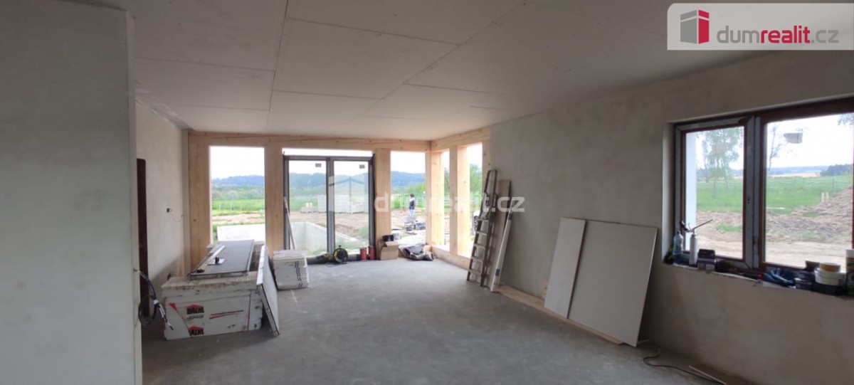 Dumrealit. cz Vám nabízí prodej novostavby rodinného domu v obci Zvěstov, část obce Vlastišov o dispozici 4 kk. Novostavba se nachází na vlastním pozemku o výměře 1407 m², příjezd na pozemek z obecní komunikace. RD (rodi...nný dům) je ve fázi hrubé stavby, majitel projektu dokončí ideálně dle požadavků nového majitele. Vytápění domu řešeno tepelným čerpadlem s rozvodem podlahového vytápění, voda z vlastního vrtu na pozemku, splašková voda svedena do septiku. Obvodové zdivo 44 cm + 12 cm zateplení, plechová střešní krytina.