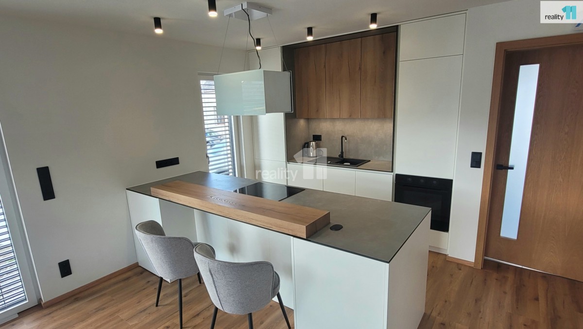 včetně provize a práv. servisu. Reality 11 Vám zprostředkují prodej nového domu v Kladně část Dubí, ulice Pechlátova. Dům je součástí rezidenčního komplexu Zelené Kladno a je dílem předního dodavatele dřevostaveb RD (rodin...ný dům) Rýmařov. Je postaven z kvalitních, ekologických materiálů s dlouhou životností a 30ti letou zárukou. Dům o dispozici 4+kk s podlahovou plochou 119 m² a pozemkem o velikosti 355 m². Praktické uspořádaní obytných prostor, velice dobře je řešeno propojení obývací části domu přes terasu do klidné udržované zahrady poskytující patřičné soukromí. Dům je částečně zařízený a disponuje veškerým komfortem pro moderní bydlení. Výtápění je zajištěno tepelným čerpadlem, s podlahovým vytápěním, napojení na dálkový vodovod a kanalizaci. Všude plastové okna s trojsklem a stínění je zajištěno žaluziemi. Kuchyňská linka je vybavená všemi spotřebiči, schodiště je dubové dřevěné, vybavení koupelen Rako a Swiss Aqua Technologies, k dispozici optický internetové připojení a alarm Jablotron. Velkou výhodou je přípojka vody z Vltavy na závlahu zahrady. K dispozici jsou 2 parkovací místa. Dům je těsně před dokončením, probíhají závěrečné úpravy, včetně zemních prací a klazení trávniku na zahradě . Jednou z výhod jsou velice nízké provozní náklady cca 6 000, - Kč/měs. Bydlení v klidu, v blízkosti přírody, za domem začínají cyklostezky, lesy a park. Občanská vybavenost v městské části Dubí je kompletní: školka v ulici, večerka poblíž, restaurace a cca 100m na autobus do centra Kladna. Výborná dopravní dostupnost - do centra Kladna 10min, na okraj Prahy na metro cca 20min, případně vlakem 30min do centra Prahy. Ideální pro rodinu či páry hledající klidné a komfortní bydlení v moc hezké lokalitě. Nenechte si ujít tuto jedinečnou příležitost koupě tohoto moderního domu na okraji Kladna poblíž přírody. Díky 30 - ti leté záruce získáte nejen kvalitně postavěnou nemovitost, ale také její bezstarostné užívání. Možnost financování hypotékou, kterou Vám rádi zařídíme. Pro více informací a prohlídku neváhejte nás kontaktovat. Ev. číslo: 27229. Energetický štítek: B (248 kWh/m2/rok).
