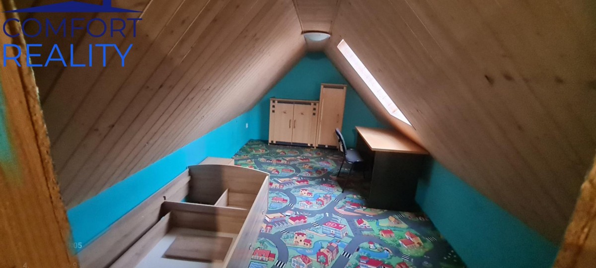 Za domem se nachází pás pozemku ve svahu (sad), který lze využít například jako zahradu, relaxační zónu nebo prostor pro další úpravy dle vlastních představ.