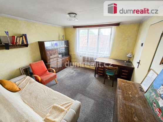 cena včetně provize a právního servisu. Prodej domu 4+1, který se nachází v obci Domašín u Vlašimi. Dispozičně je dům řešený vstupní chodbou, ze které se vchází do kuchyně a ze kte...ré se dostaneme i do obývacího pokoje. Dále je v přízemí prostorná místnost, jejíž dominantou je krb a je brána jako společenská místnost. Koupelna je s vanou a toaleta samostatně. V patře, do kterého vedou schody z chodby v přízemí, se nachází dva samostatné pokoje, dva menší půdní úložné prostory a vstup na půdu, která je prostorná a lze tam vybudovat další obytnou část. K domu je napojena hospodářská část, kde se nachází garáž, chlév, kde byla hospodářská zvířata, králíkárna a půda na seno. Na pozemku je i krásná a suchá stodola 165m², která je rozdělena na dvě části, v první části byla truhlářská dílna a půda a v druhé části byl chov slepic a jsou zde i dva kurníky. K domu je přiveden plyn, stejně tak tlaková kanalizace. Voda je městská, ale je zde i studna. Vytápění zajišťuje kotel na pelety se zásobníkem na cca 3 dny. Dům má vytvořen i oficiální znalecký posudek od statika. V obci je obchod, školka, pošta, veškerá občanská vybavenost je pak ve Vlašimi, vzdálené 1 km od domu. Perfektní přímé spojení s Prahou MHD. Automobilem je to na Chodov 40 min. jízdy. Dům lze financovat hypotečním úvěrem, se kterým Vám rádi pomůžeme. Jelikož ještě nebyl vypracován energetický štítek budovy, uvádíme písmeno G. Ev. číslo: 648063. Energetický štítek: G