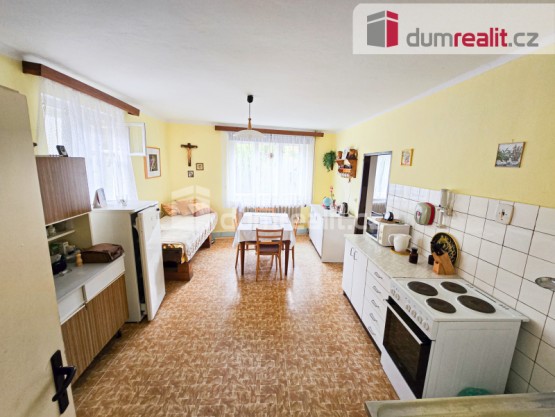 cena včetně provize a právního servisu. Prodej domu 4+1, který se nachází v obci Domašín u Vlašimi. Dispozičně je dům řešený vstupní chodbou, ze které se vchází do kuchyně a ze kte...ré se dostaneme i do obývacího pokoje. Dále je v přízemí prostorná místnost, jejíž dominantou je krb a je brána jako společenská místnost. Koupelna je s vanou a toaleta samostatně. V patře, do kterého vedou schody z chodby v přízemí, se nachází dva samostatné pokoje, dva menší půdní úložné prostory a vstup na půdu, která je prostorná a lze tam vybudovat další obytnou část. K domu je napojena hospodářská část, kde se nachází garáž, chlév, kde byla hospodářská zvířata, králíkárna a půda na seno. Na pozemku je i krásná a suchá stodola 165m², která je rozdělena na dvě části, v první části byla truhlářská dílna a půda a v druhé části byl chov slepic a jsou zde i dva kurníky. K domu je přiveden plyn, stejně tak tlaková kanalizace. Voda je městská, ale je zde i studna. Vytápění zajišťuje kotel na pelety se zásobníkem na cca 3 dny. V obci je obchod, školka, pošta, veškerá občanská vybavenost je pak ve Vlašimi, vzdálené 1 km od domu. Perfektní přímé spojení s Prahou MHD. Automobilem je to na Chodov 40 min. jízdy. Dům lze financovat hypotečním úvěrem, se kterým Vám rádi pomůžeme. Ev. číslo: 648063. Energetický štítek: E
