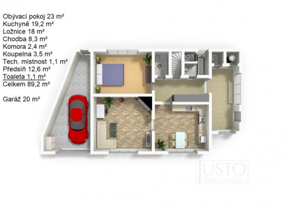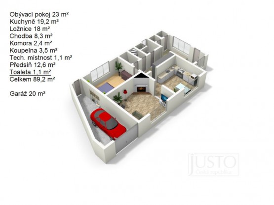 Pokud hledáte nemovitost za účelem bydlení 25 minut od Prahy, nabízíme vám ke koupi rodinný dům o dispozici ... pokoje + 1 kuchyň">2+1 na vlastním pozemku o celkové výměře 388 m². Obytná plocha domu je 89 m².
