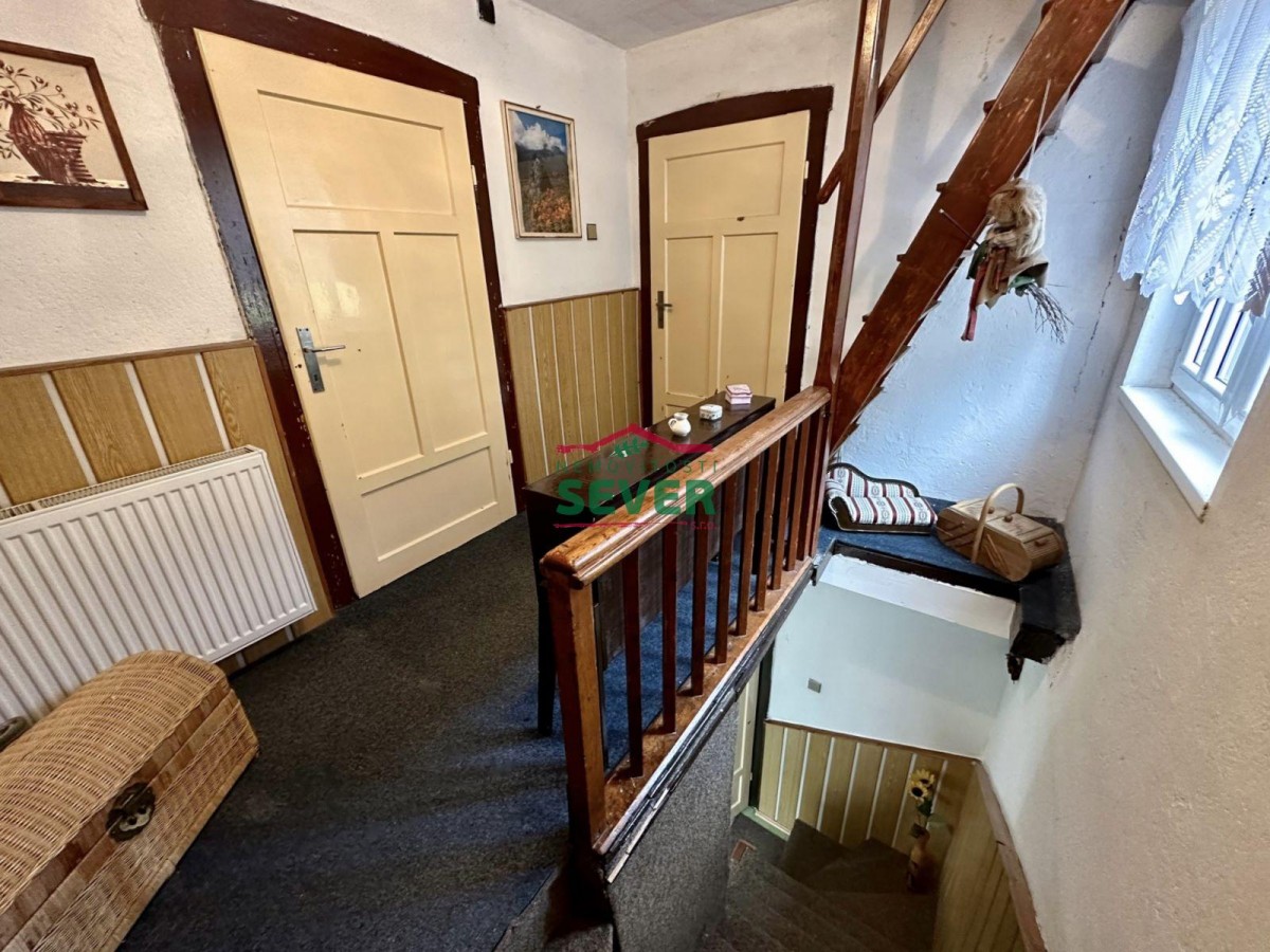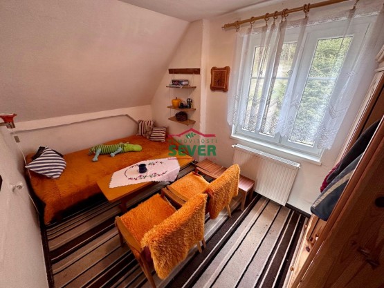 Nemovitosti SEVER vám zprostředkují koupi rodinného domu s dispozicí 4+1 v osobním vlastnictví v Kryštofových Hamrech v okr. Chomutov. Samostatně stojící dům se zastavěnou plochou 60... metrů čtverečních se nachází v malebném prostředí Krušných hor pod Přísečnickou přehradou v blízkosti města Vejprty. Podsklepený dům se v přízemí skládá z předsíně, kuchyně, obývacího pokoje, společně řešené koupelny s toaletou a vstupu do patra. V patře se dům dále skládá ze tří pokojů a vstupu do podkroví. Dům prošel rekonstrukcí kuchyňské části a sociálního zařízení s vytápěnou podlahou, jsou zde plastová okna, zánovní vchodové dveře a odpad je svedený do ČOV (osobní vlastnictví). Pitná voda je přivedena z přírodního zdroje a je k dispozici celoročně. Ohřev vody je zajištěný přes bojler. Vytápění domu je řešeno kotlem na tuhá paliva, ze kterého je topení ústředně rozvedené do všech místností. Do domu je zavedena telefonní přípojka, připojený satelit a je zde také možnost připojení k internetové připojeníu. Součástí prodeje je také mírně svažitá zahrada s výměrou 380 metrů čtverečních. Pozemek lze dále rozšířit o pozemek ve stráni, který je možné odkoupit. Parkovat lze přímo na pozemku nebo na parkovacím stáním vzdáleném 2 minuty chůze od domu. V obci je k dispozici restaurace, kavárna a dětské hřiště. V letních měsících je možné využít rozmanité cyklostezky, houbařit či si zajet 15 minut automobilem od obce na přírodní koupaliště, které je k dispozici za hranicí s Německem. V zimních měsících lze na druhou stranu využít dětskou lyžařskou sjezdovku přímo ve vsi, 20 minut jízdy automobilem Skiareál Klínovec či 30 minut vzdálený Skiareál Boží Dar. Veškerou občanskou vybavenost nalezneme v 9 kilometrů vzdálených Vejprtech. V případě zájmu zajistíme optimální variantu financování na tuto nemovitost za zvýhodněných podmínek pro naše klienty.