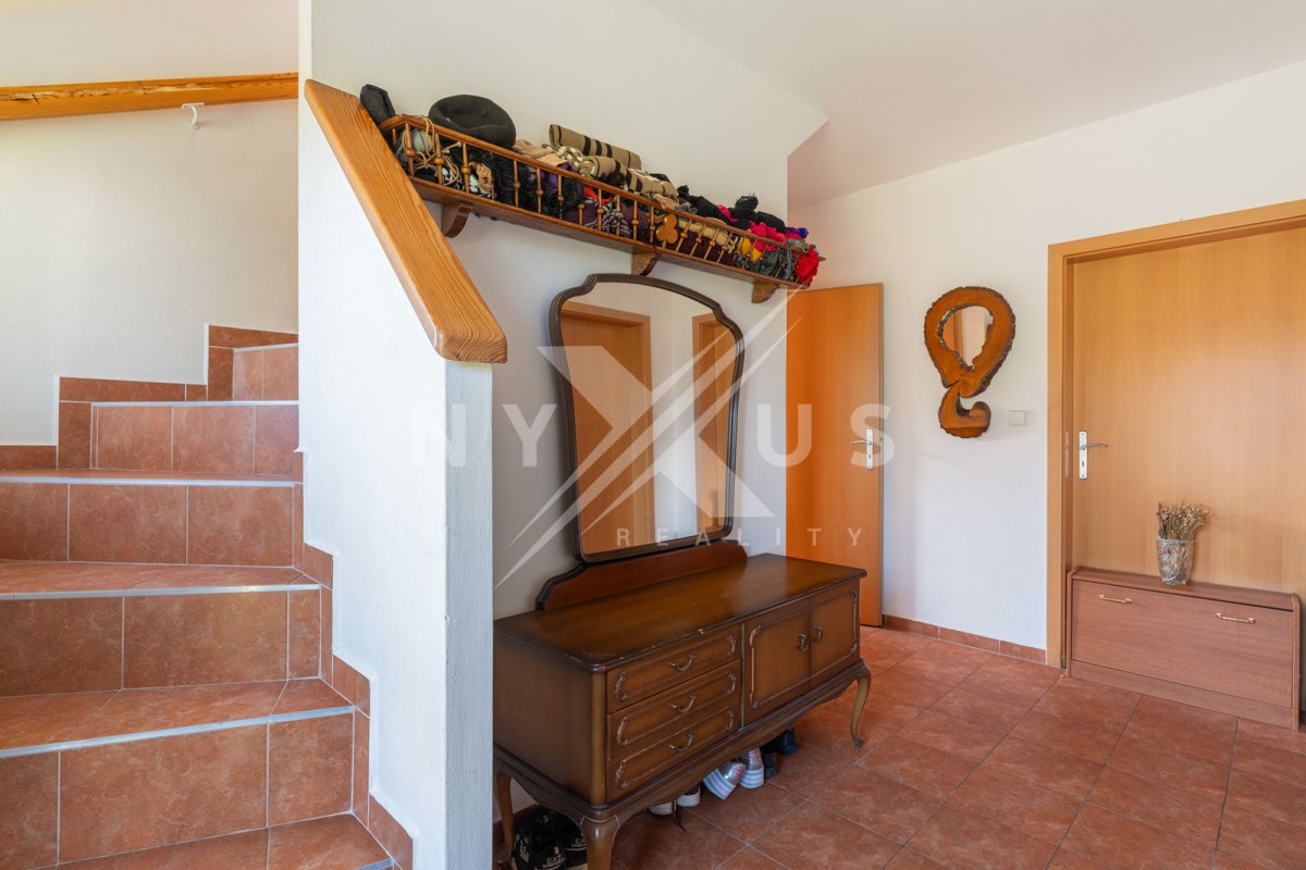 V patře jsou k dispozici tři pokoje, koupelna s vanou a sociální zařízení WC, šatna a balkón.