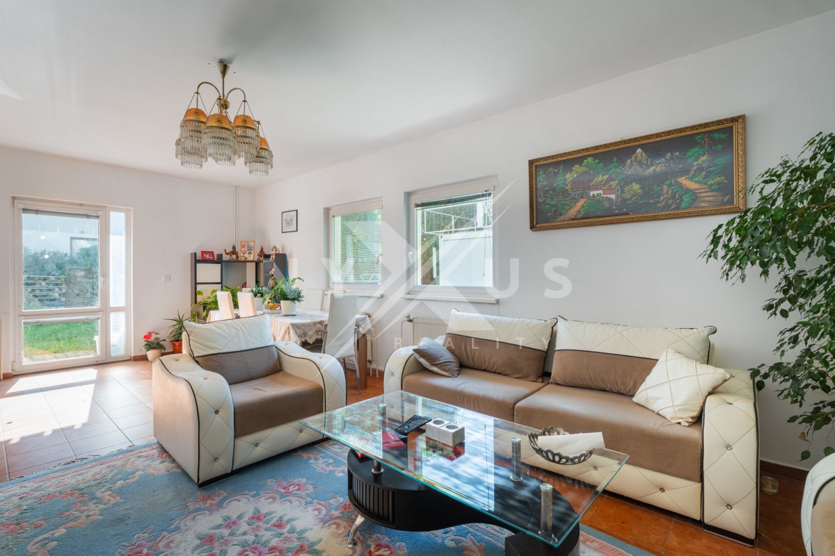 Interiér domu nabízí vstupní předsíň, samostatnou kuchyni, obývací pokoj se vstupem do zahrady, velkou technickou místnost, komoru, samostatnou toaletu s umyvadlem.
