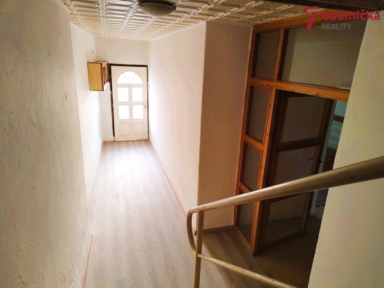 Zděný obyvatelný dům byl postavený v r. 1953 a průběžně udržován, dispozice 4+1. V 1. NP (první nadzemní patro) je kuchyně, 2 pokoje, koupelna s vanou, sociální zařízení WC, cho...dba a veranda se šatnou a špajz, ve 2. NP (druhé nadzemní patro) jsou 2 pokoje, koupelna se sprchovým koutem a sociální zařízení WC. Dům je kompletně vyklizený s možností rychlého nastěhování, topení je zajištěno krbovou vložkou, ohřev vody - el. bojlerem, okna plastová s dvojsklem. IS: elektřina 230/400V, kanalizace, vodovod (nová vododovodní přípojka), možnost připojení plynu. Zahrada za domem je přístupná i autem po místní komunikaci. Na revitalizaci domu je možné využít dotační program “OPRAV DŮM PO BABIČCE”.