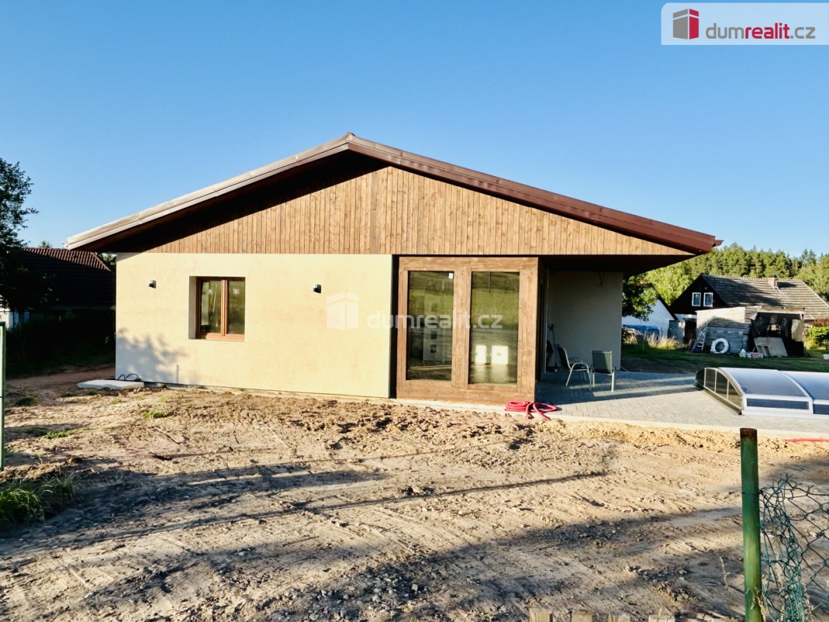 Dumrealit. cz Vám nabízí prodej novostavby rodinného domu v obci Zvěstov, část obce Vlastišov o dispozici 4kk a užitné ploše 120 m². Spádová obec Zvěstov je cca 2 km a je zde obchod smíšeného zboží. Novostavba se nachází n...a vlastním pozemku o výměře 1407 m² na okraji obce. K výstavbě bylo použito zdivo Wieneberger 30 cm + 10 cm zateplení pomocí polystyrenu. Střecha - krov - sbíjený vazník, plechová střešní krytina Satjam. Stropy sádrokartonové, zateplené minerální foukanou izolací 30 cm. Okna od české společnosti Jis , trojsklo, masivní dřevěná okna rovněž trojsklo s bezpečnostní fólií. Voda do domu přivedena z vlastní vrtané studny hluboké 50 m a vydatností 300 l/ hod, splašková voda svedena do septiku. Vytápění řešeno tepelným čerpadlem s rozvodem do podlahy v kombinaci s krbovou vložkou. U domu venkovní terasa o výměře 25 m² na níž navazuje přístup k bazénu o rozměrech 6 krát 3 m se zastřešením, jehož příslušenstvím je noční osvětlení. Terasa a pochozí část kolem bazénu vydlážděna zámkovou dlažbou. Na RD (rodinný dům) bude namontován kamerový systém s dálkovým přístupem přes aplikaci a elektronické zabezpečovací zařízení. Pozemek je oplocený s přístupem z obecní komunikace.