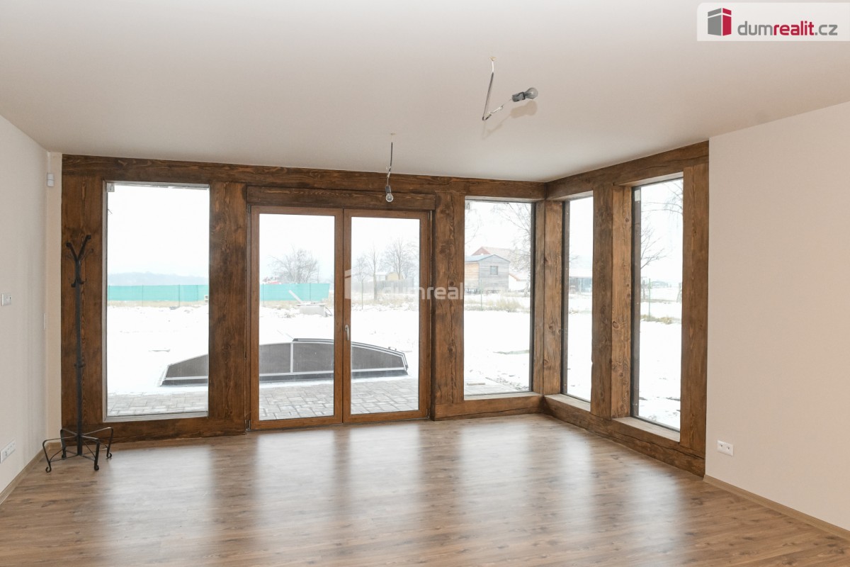 Dumrealit. cz Vám nabízí prodej novostavby rodinného domu v obci Zvěstov, část obce Vlastišov, se zastřešeným bazénem, luxusním krbem, pergolou o dispozici 4kk a užitné ploše 120 m². Novostavba se nachází na vlastním ro...zlehlém pozemku o výměře 1407 m² na okraji obce. K výstavbě bylo použito zdivo Wieneberger 30 cm + 10 cm zateplení pomocí polystyrenu. Střecha - krov - sbíjený vazník, plechová střešní krytina Satjam. Stropy sádrokartonové, zateplené minerální foukanou izolací 30 cm. Okna od české společnosti Jis , trojsklo, masivní dřevěná okna rovněž trojsklo s bezpečnostní fólií. Voda do domu přivedena z vlastní vrtané studny hluboké 50 m a vydatností 300 l/ hod, splašková voda svedena do septiku. Vytápění řešeno tepelným čerpadlem s rozvodem do podlahy v kombinaci s krbovou vložkou. Obývací pokoj s luxusním krbem a prosklenou stěnou, která propojuje interiér s prostornou pergolou o výměře 25 m² se vstupem do zastřešeného bazénu o rozměrech 6 x 3 m, jehož příslušenstvím je noční osvětlení. Pochozí část terasy kolem bazénu vydlážděna zámkovou dlažbou. V domě k dispozici dvě toalety, jedna samostatná, druhá součástí koupelny. V domě je namontován kamerový systém s dálkovým přístupem přes aplikaci a elektronické zabezpečovací zařízení. Pozemek rovinatý, zatravněný s přístupem z obecní komunikace. Rodinný dům je k okamžitému nastěhování.