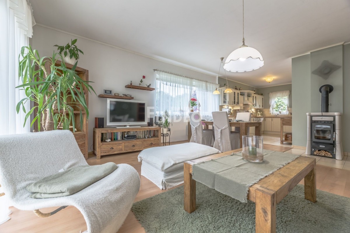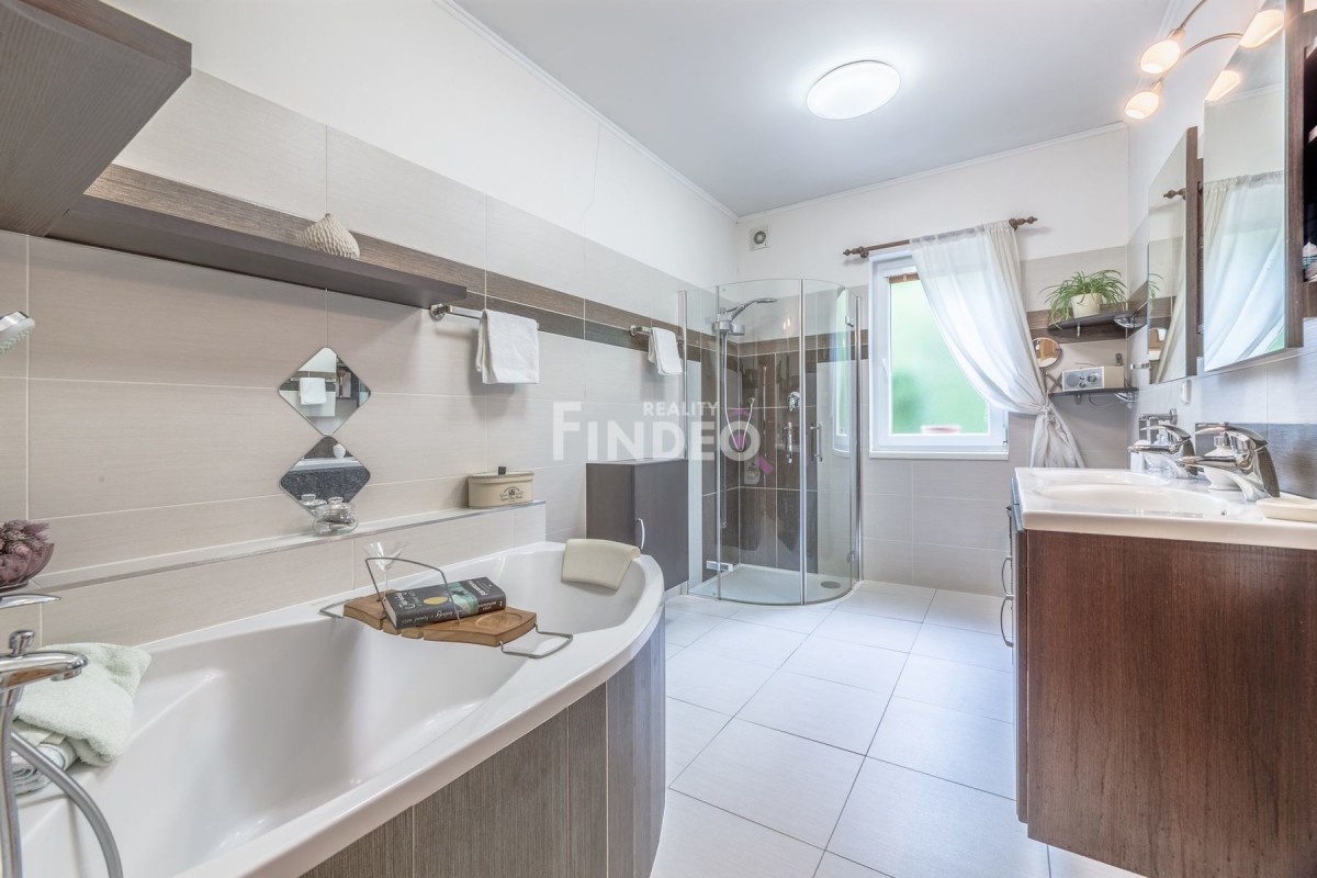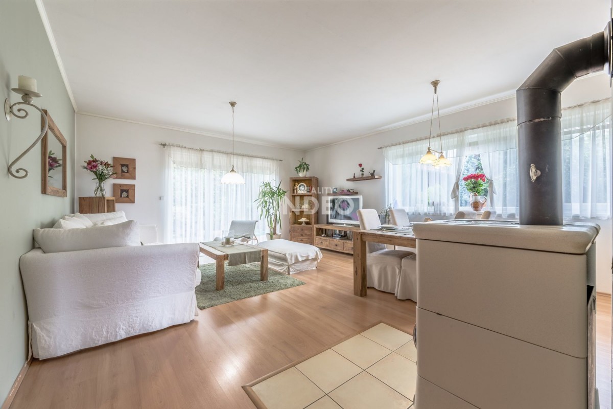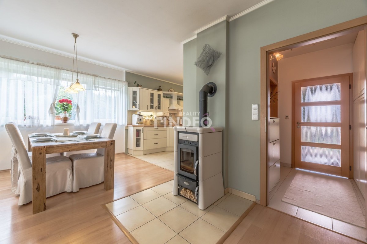 Jedná se o dům typu bungalow, který se nachází ve staré zástavbě rodinných domů a svým majitelům nabízí maximum soukromí. V domě o zastavěné ploše 151 m2 se nachází prostorný obývací pokoj (28, 32 m2) s krbovými kamny a vstupem na letní terasu (45 m2), kuchyně (9, 97 m2) s kuchyňskou linkou a velmi praktickou komorou. V domě jsou dále k dispozici tři identicky stejné pokoje (11, 49 m2), samostatná šatna, koupelna s vanou, sprchou a dvojumyvadlem, samostatné sociální zařízení WC, předsíň a chodba. V předsíni a na chodbě jsou k dispozici vestavěné skříně. K domu náleží garáž, letní terasa a pro letní grilování je k dispozici velmi prostorný zahradní altán s grilem a udírnou. Součástí altánu je samostatná místnost, kterou lze využít jako technické zázemí např. pro zahradní nářadí nebo jako dílnu.