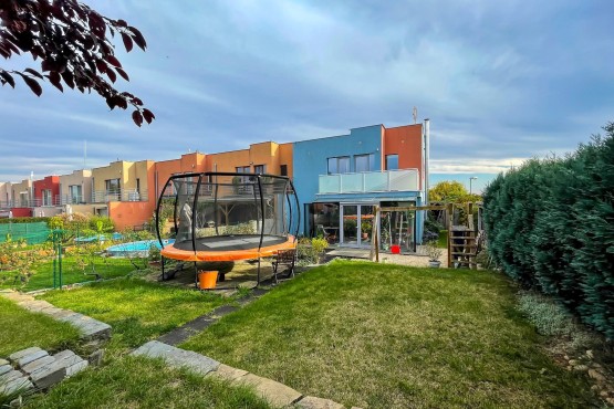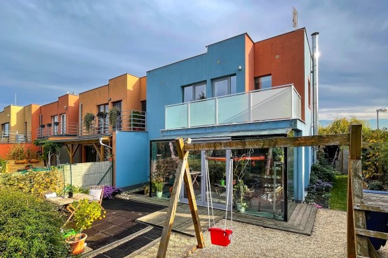 Prodej rodinného domu 5+kk s udržovanou zahradou v obci Syrovice, okres Brno venkov. Krajní – polořadový dvoupodlažní dům je novostavbou z roku 2009. Při výstavbě domu byla vo...lena řada nadstandardních stavebních a konstrukčních prvků s důrazem na vysoký komfort bydlení, funkčnost a jedinečný nadčasový design. Spojením kvalitního velkoformátového zasklení s ideální orientací na světové strany je docíleno maximálního prosvětlení a proslunění celého interiéru domu. V přízemí se nachází prostorný obývací pokoj s kuchyňským koutem s přístupem na dvůr přes zimní zahradu, pokoj pro hosty, koupelna s sociální zařízení WC, chodba a technická místnost pod schodištěm. V patře jsou dva dětské pokoje, ložnice, koupelna a samostatné sociální zařízení WC. Z dětského pokoje a ložnice je vstup na společnou terasu. Parkování pro 2 auta je zajištěno před domem na vlastním pozemku. K dispozici udržovaný dvůr se zahradou, přístupný z obývacího pokoje přes zimní zahradu, ale také samostatně kolem domu. Celková obytná plocha domu je 125 m2, kompletní plocha pozemků činí 364 m2.