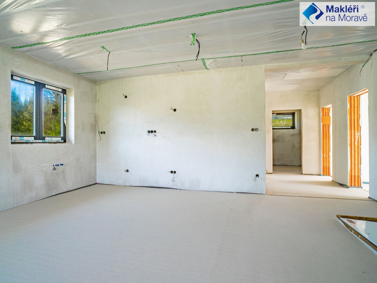 V současné době je dům ve stádiu, kdy začínají probíhat práce na vnitřních omítkách a venkovním zateplování. A právě to je ta chvíle, kdy můžete vstoupit do procesu výběru kuchyňské linky, vybavení koupelny, interiérových dveří a zárubní, podlah, parapetů a dokonce i fasády domu podle Vašeho vkusu. Tento dům bude dostavěn na klíč ve standardním provedení s tím, že v uvedené kupní ceně je zahrnuta i zámková dlažba kolem domu, kamerový systém a garážové stání. Součástí ceny je rovněž majetkový podíl ½ na příjezdové cestě.