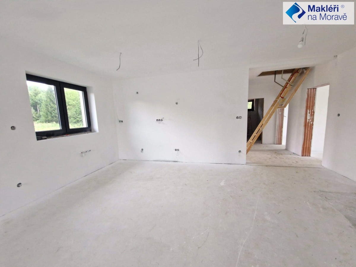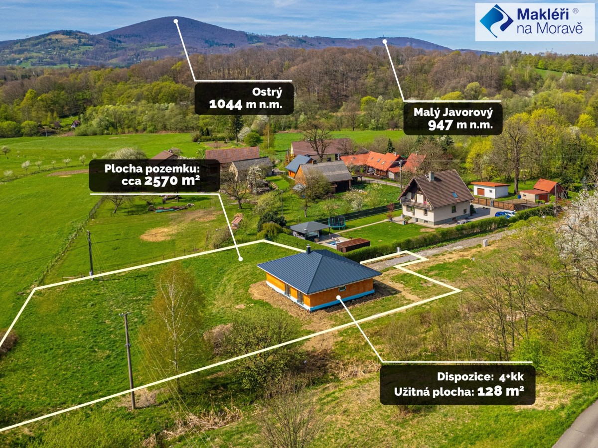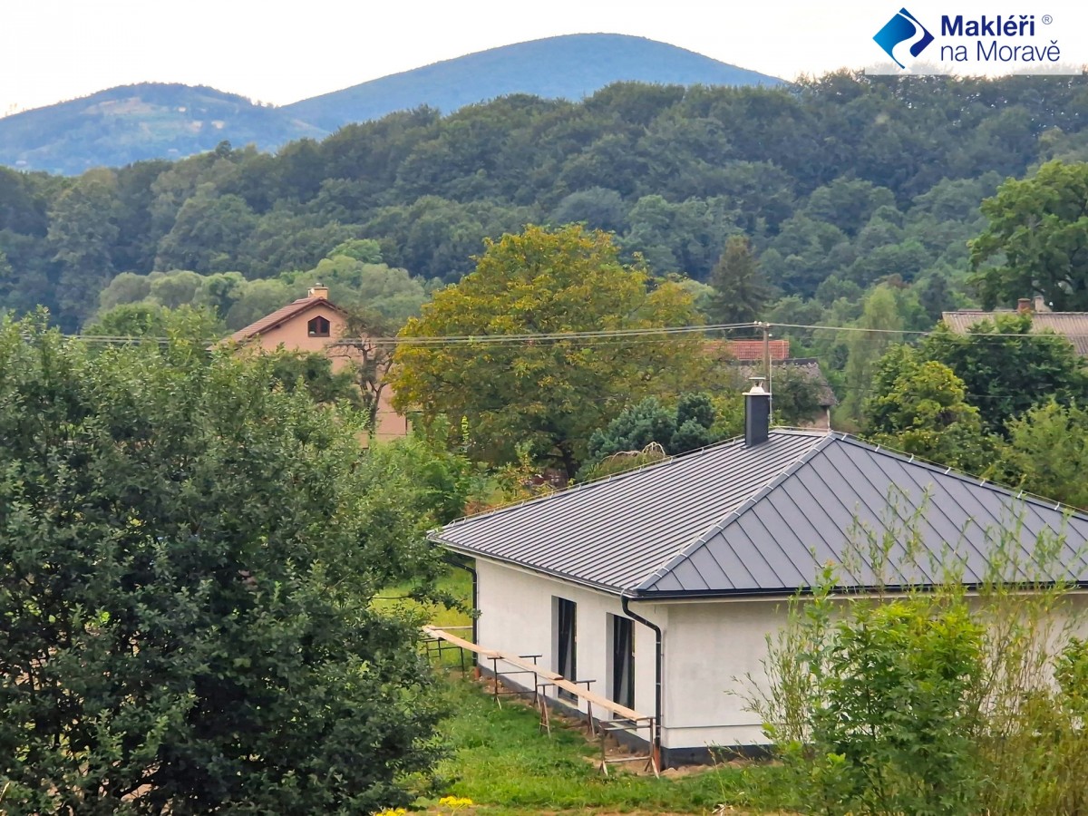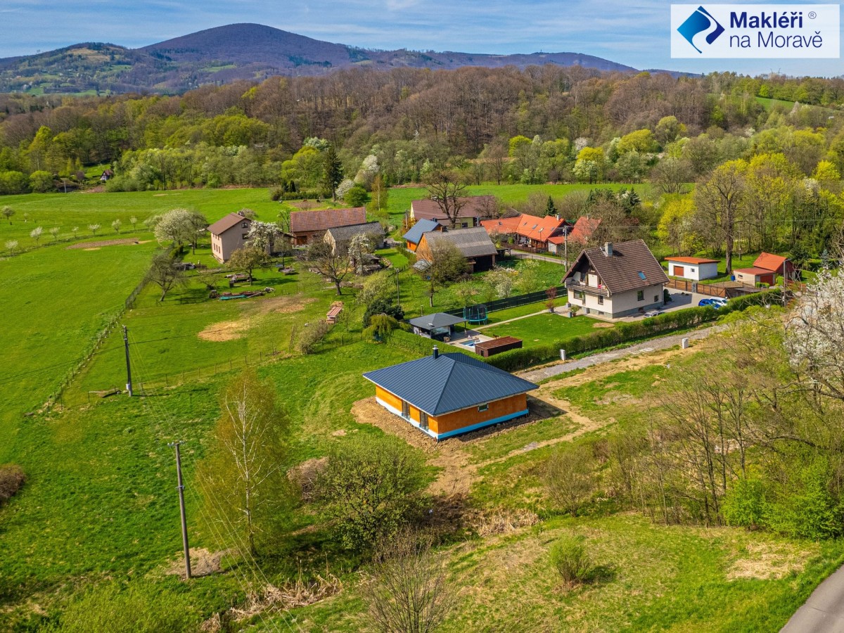 Chcete - li si koupit hezký nový dům, na jehož dokončení se můžete spolupodílet, máte takovou možnost v malebné podhorské obci Návsí u Jablunkova. Zde se nachází novostavba bungalovu s dispozicí ...hyňský kout">4+kk s užitnou plochou 128 m2 (zastavěná plocha 160 m2) a velkou rovinatou zahradou o ploše 2597 m2.