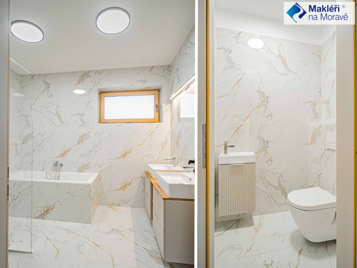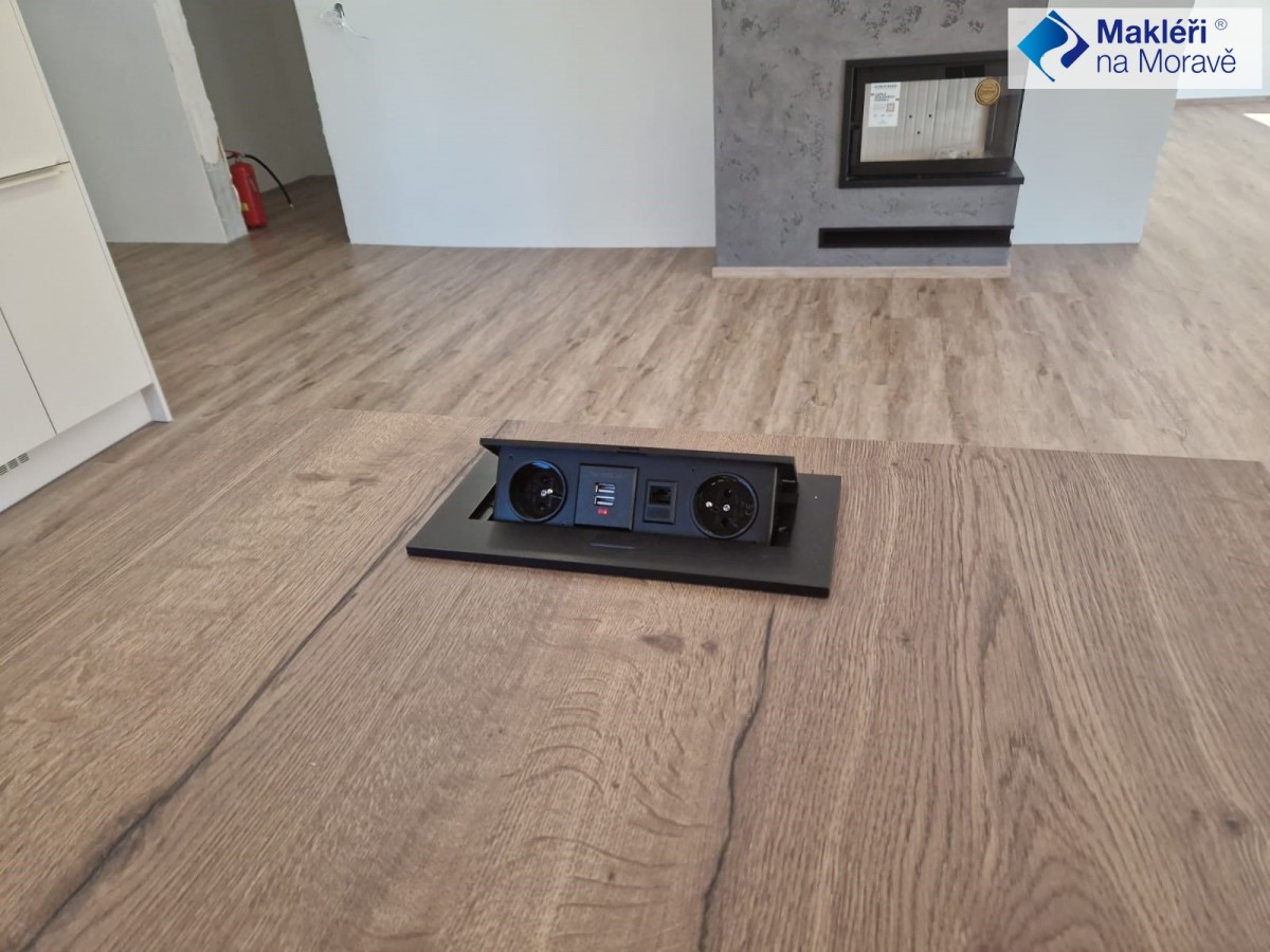 Vytápění domu zajišťuje systém elektrického podlahové topení, který umožňuje zapínání jednotlivých pokojů samostatně. Dům je kompletně zateplen, což spolu s kvalitními okny přinese značnou úsporu tepla.