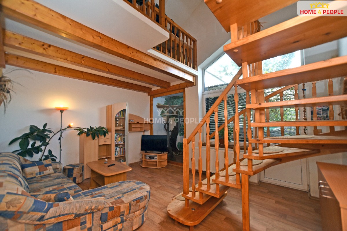 Do 2. NP (druhé nadzemní patro) se vstupuje po dřevěném schodišti z obývacího pokoje. Vysoký strop je unikátně řešen dřevěnou galerií. Tím vytváří atraktivní dominantu obývacího pokoje a příjemné prostředí.