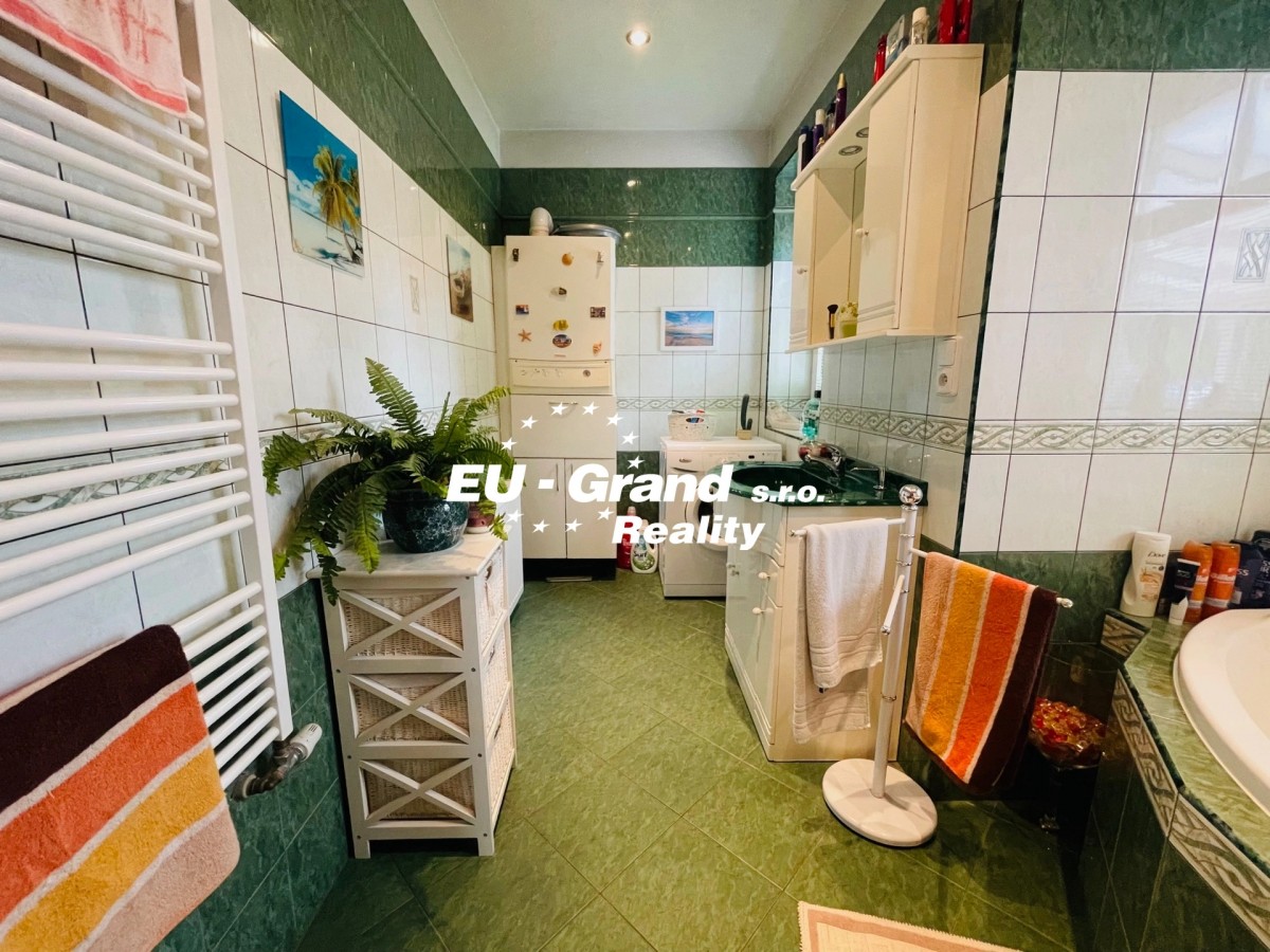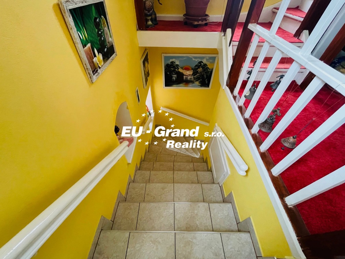 V přízemí se nachází obývací č...ást s průchodem do kuchyně. Dále je v přízemí koupelna, samostatná toaleta a vstup na zasklenou terasu. V patře jsou 3 místnosti. Nabízená nemovitost je z části podsklepena a má velký půdní prostor.