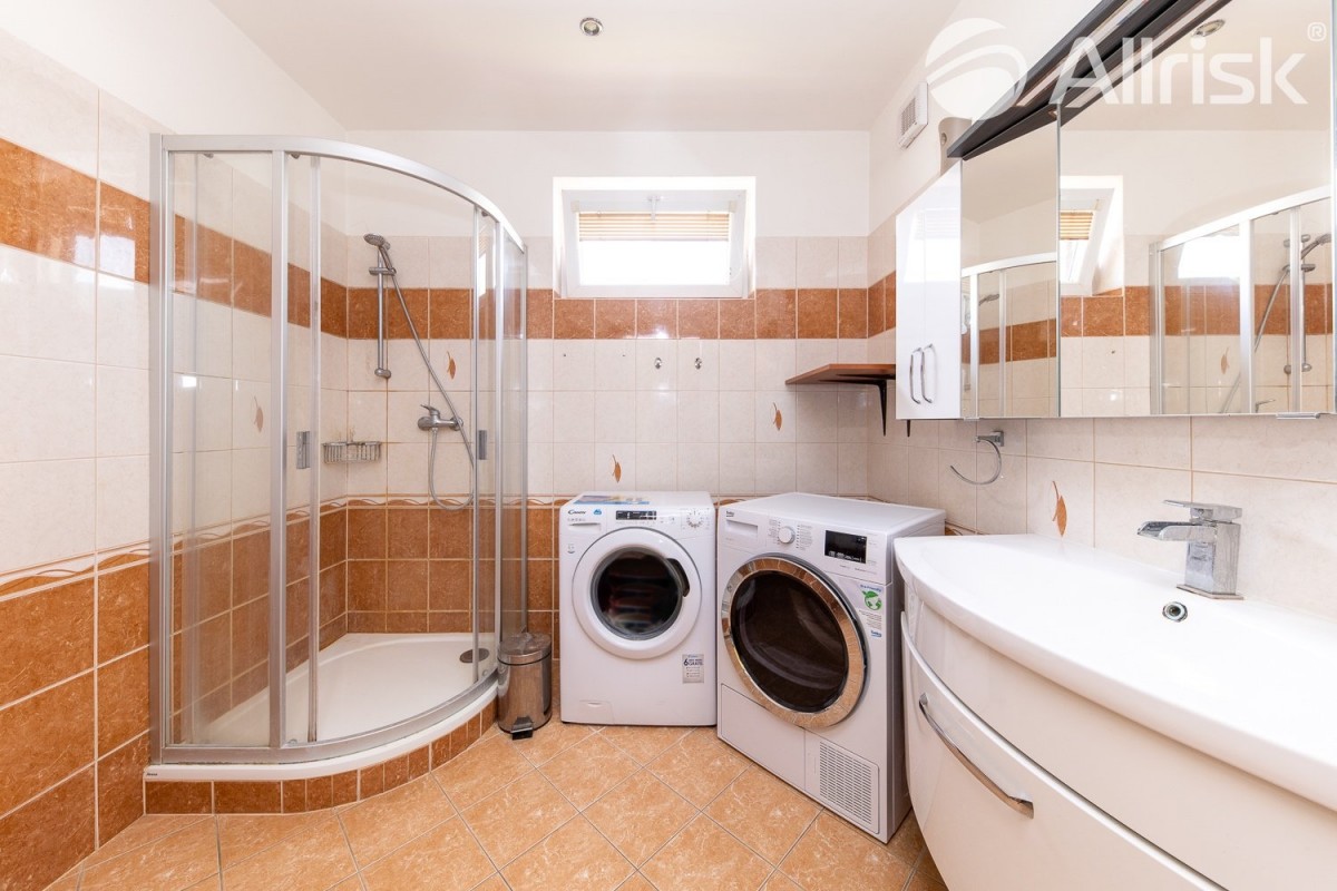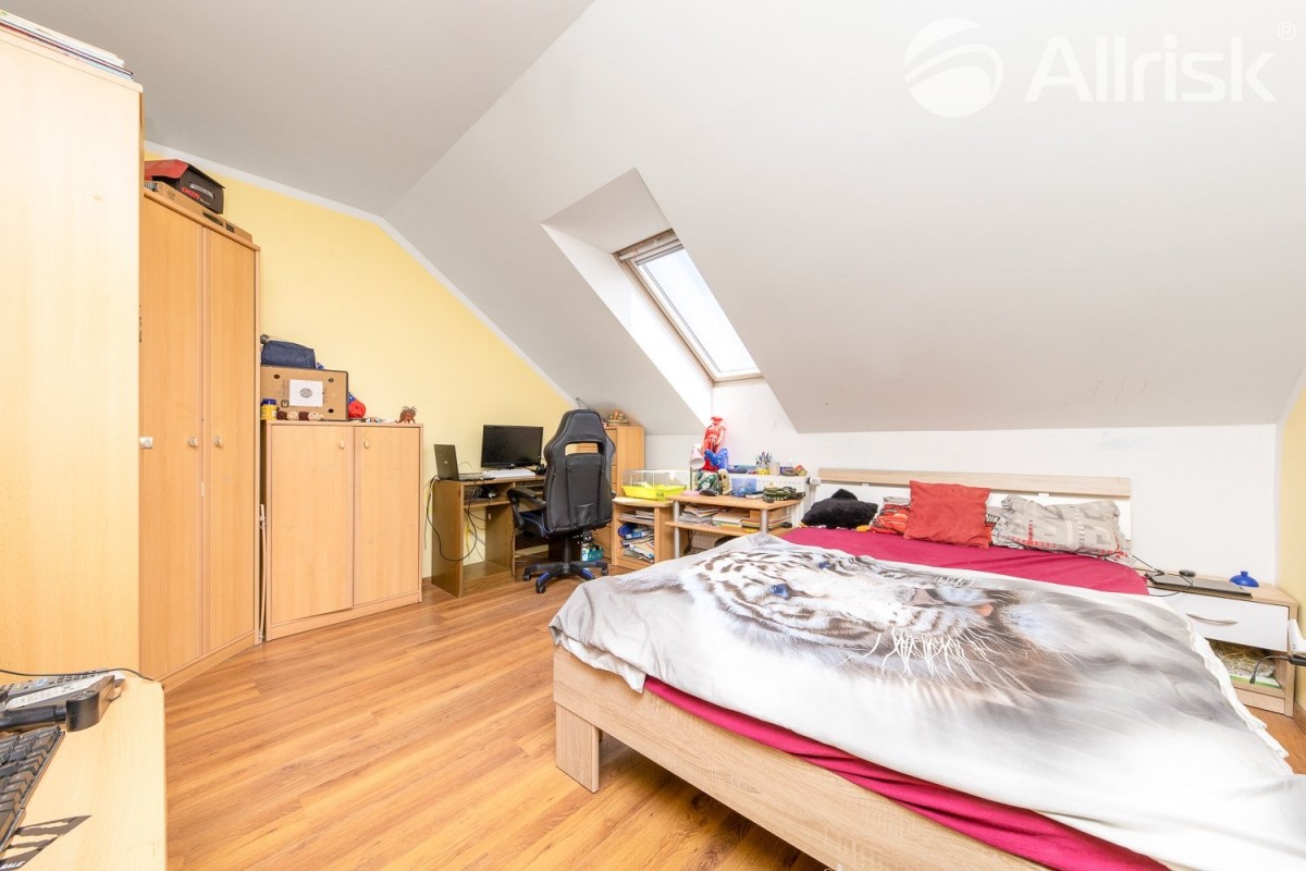 Dále se na patře nachází druhá koupelna s sociální zařízení WC (10, 80 m2) a chodba(2, 09 m2).