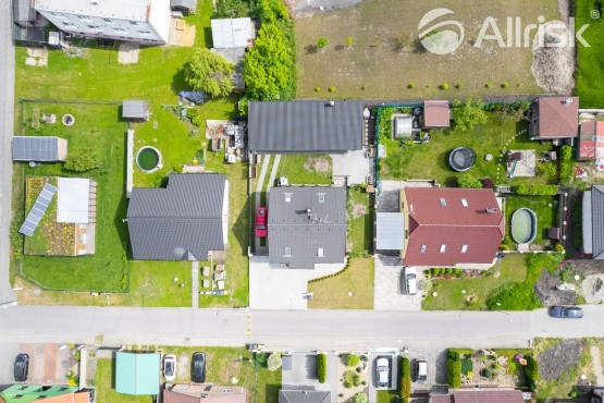 V samostatné stojícím domku na zahradě se nachází velké zastřešené posezení s grilem a udírnou, ze kterého je přímý vstup do tzn. venkovní kuchyně, dále jsou zde samostatné vstupy do dřevníku, garáže s dílnou a technické místnosti s sociální zařízení WC.
