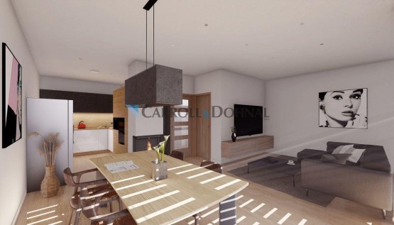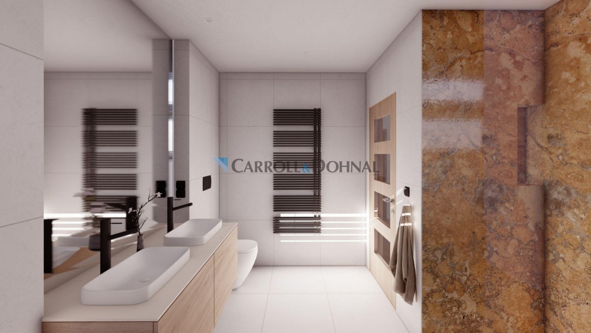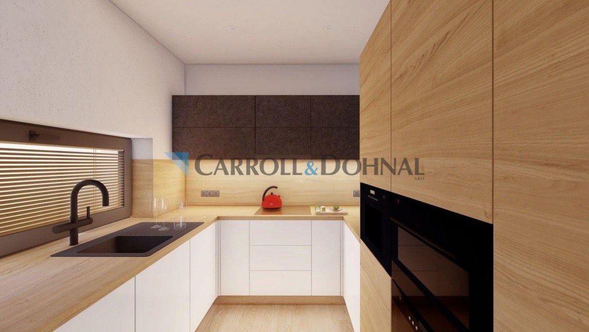 Komfortní bydlení v domě zajišťuje dispozice 4+kk s terasou s výměrou 130 m2 na pozemku o rozloze 236 m2.