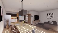 V 1. NP (první nadzemní patro) naleznete komoru, technickou místnost, samostatnou toaletu, s umyvadlem, obývací pokoj s kuchyní se vstupem přes HS portál na terasu.
