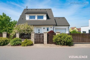 V patře najdete dva dětské pokoje, ložnici, praktickou šatnu a další koupelnu. Dům disponuje dvěma půdami jedna je chytře zrekonstruovaná na podkrovní hernu pro děti, druhá nad garáží slouží jako praktický úložný prostor pro sezónní věci.