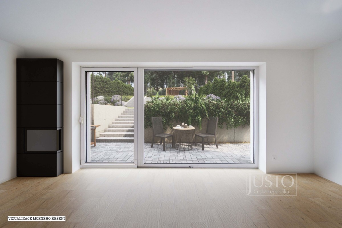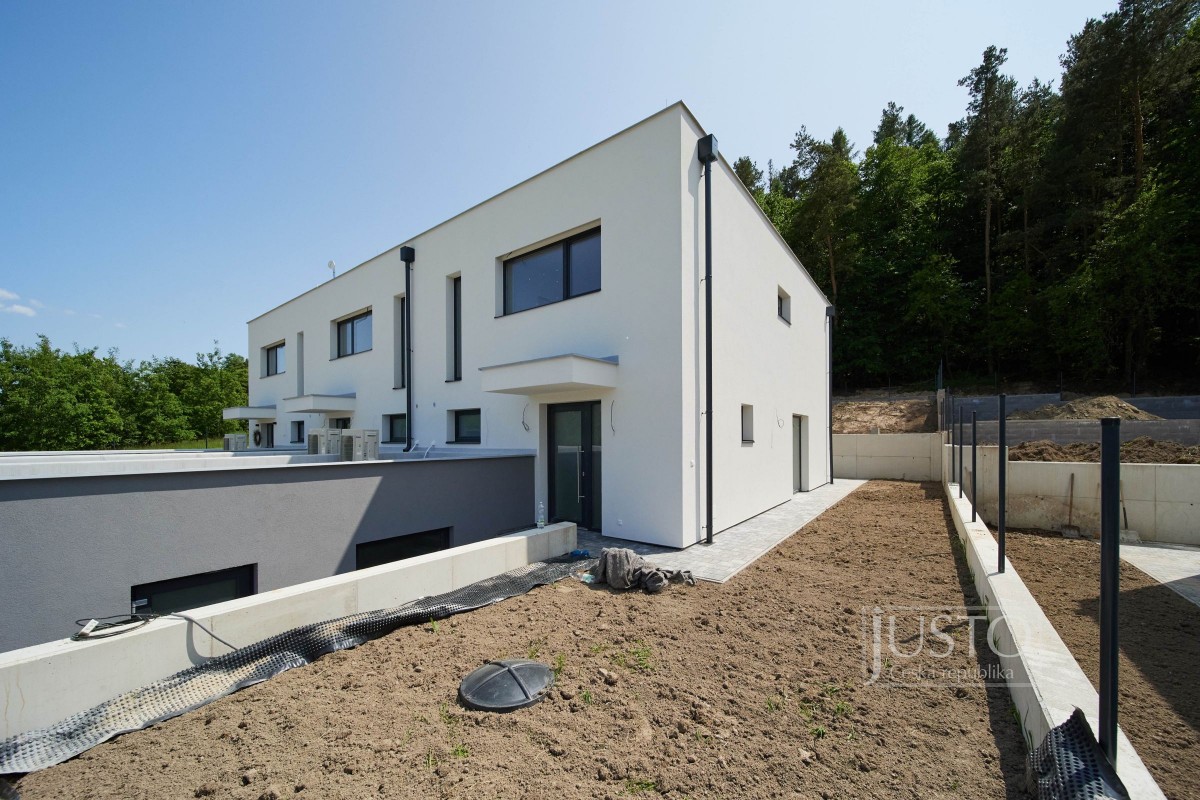 Ke každé jednotce náleží prostorná garáž, ale také jedno parkovací stání. Podlahová plocha ve dvou podlažích činí 149, 4m², a to včetně zmíněné garáže. V přízemí nalezneme vstupní halu, technickou místnost, koupelnu, samostatnou toaletu, velký obývací pokoj se vstupem na terasu a zahradu, dále místnost pod schody, kterou můžete využít například jako sklad. Když vyjdeme po schodišti do patra, uvidíme prostornou koupelnu s toaletou, 2 pokoje směřované do zahrady, ale také ložnici s šatnou a výhledem do ulice Smetanova. Shrnuto v číslech: 120, 24m² + terasa 13, 19m² + garáž 19, 69m² + vyhrazené parkovací stání před domem. Zahrada o ploše 334m², která náleží k výlučnému užívání pouze pro tuto jednotku, je přístupná jak kolem domu, tak z obývacího pokoje.