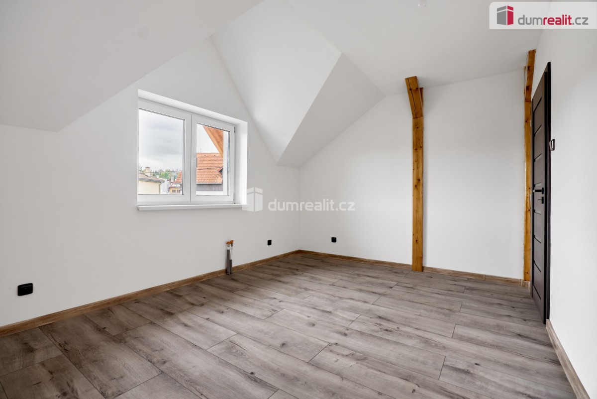 ZLEVNĚNO - 200. 000 Kč. Dumrealit. cz Vám nabízí prodej RD (rodinný dům) o velikosti 3+1 ve městě Nové Sedlo, nedaleko Karlových Varů. D...ům se nachází na pozemku o celkové výměře 563 m², v klidné části města. Tento dvoupodlažní, nepodsklepený dům s podlahovou plochou 134 m² prošel v roce 2024 kompletní rekonstrukcí dle nejnovějších trendů: nové zdivo (tvárnice YTONG) včetně fasádního zateplení (polystyren), nová sedlová střecha včetně střešních tašek Bramac, veškeré rozvody (elektroinstalace, voda, kanalizace, pevný internetové připojení), okna a balkonové dveře se sedmi komorami a trojsklem, vstupní Al. dveře s bezpečnostním kováním, interiérové dveře včetně zárubní, nové omítky a sádrokartonové stropy. Dispozice domu - Přízemí: chodba včetně schodiště, obývací pokoj a kuchyně se vstupem na terasu, koupelna s vanou a sociální zařízení WC, technická místnost. Podkroví: chodba, 2 samostatné pokoje (možnost předělání na 3 samostatné pokoje), koupelna se sprchovým koutem a sociální zařízení WC. Vytápění domu je zajištěno tepelným čerpadlem a ohřev vody je zajištěn el. bojlerem. V celém přízemí je podlahové vytápění a v podkroví jsou radiátory. Pozemek je rovinatý, slunný a je ze všech stran oplocen (3D panely a podhrabové desky) a umožňuje parkování až několika vozů na vlastním pozemku. Kolem celého domu jsou chodníky ze zámkové dlažby. Dům je nově zrekonstruovaný - vystavěný a čeká na svého 1. nového majitele. Díky ideální poloze domu máte veškerou občanskou vybavenost snadno a rychle dostupnou ve městě Nové Sedlo. Vzdálenost města Sokolov a Karlovy Vary do 10 min. automobilem. Tuto nemovitost lze hradit hypotečním úvěrem, který Vám rádi pomůžeme vyřídit v našem hypotečním centru. Ev. číslo: 648910. Energetický štítek: B
