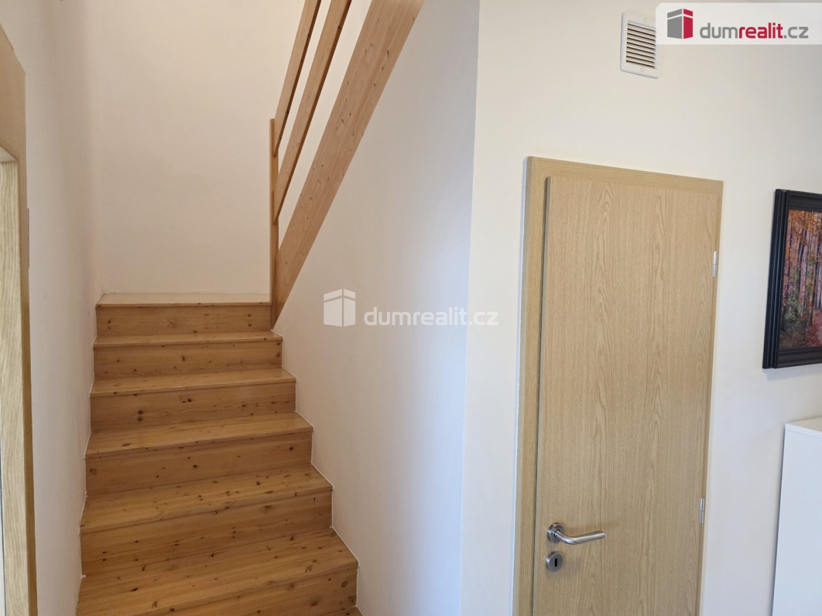 V přízemí se nachází garáž s elektrickým pohonem vrat na dálkové ovládání, předsíň, koupelna se sprchovým koutem společným sociální zařízení WC a místem pro pračku dále pak obývací pokoj s kuchyní. V prvním patře jsou pak 3 pokoje a koupelna s rohovou vanou, sociální zařízení WC a místem pro pračku, případně i sušičku.