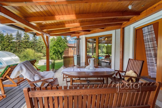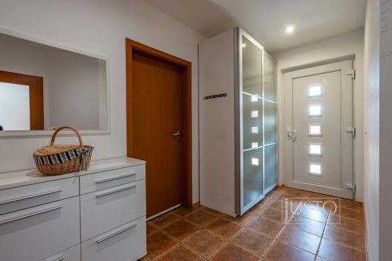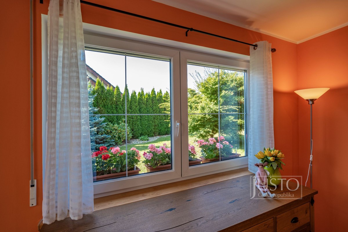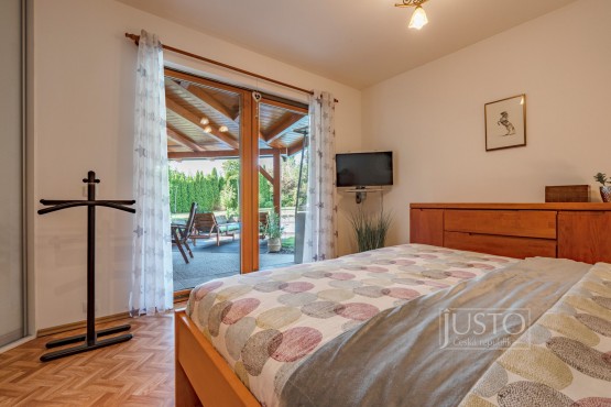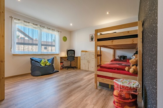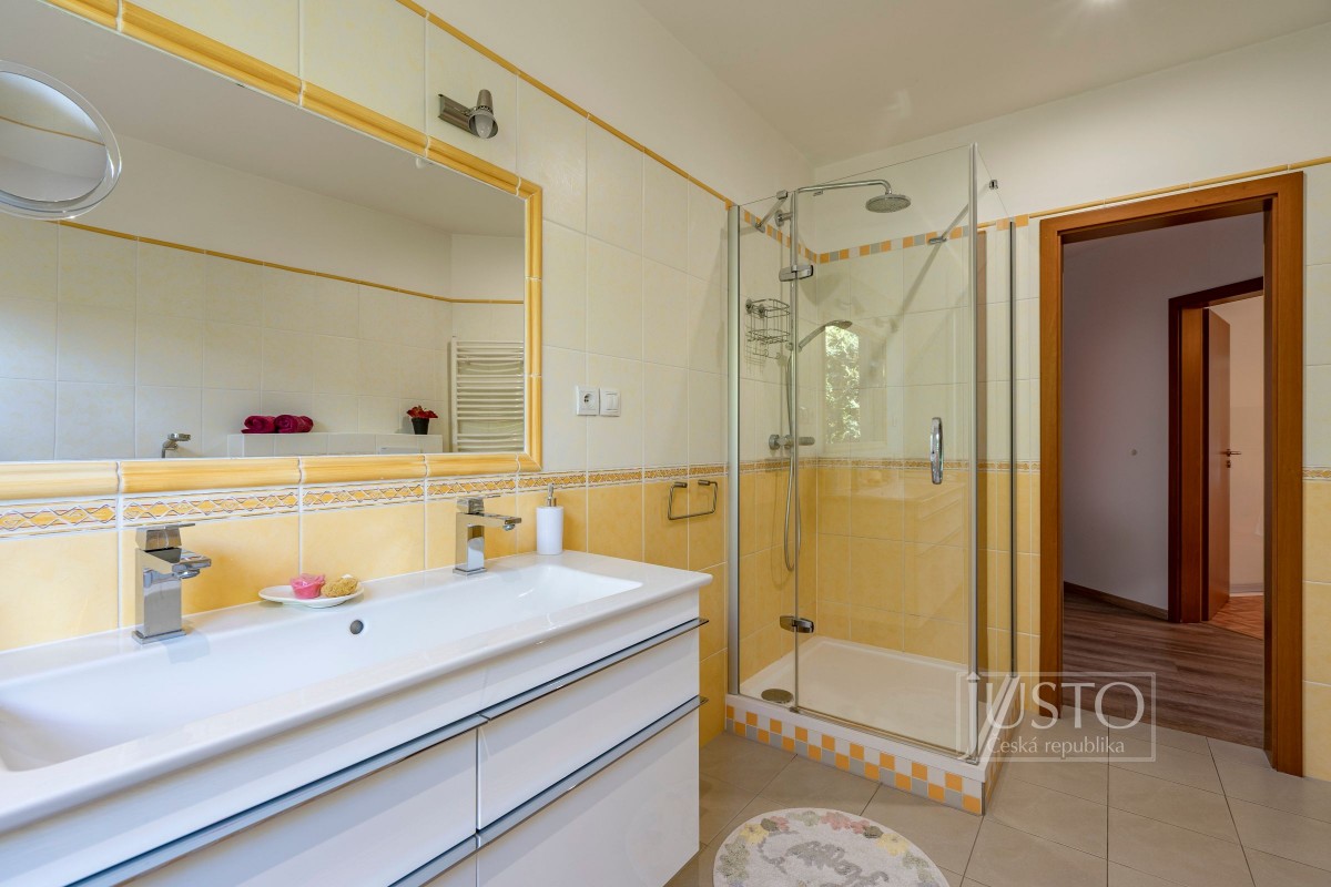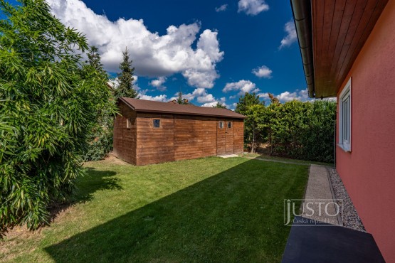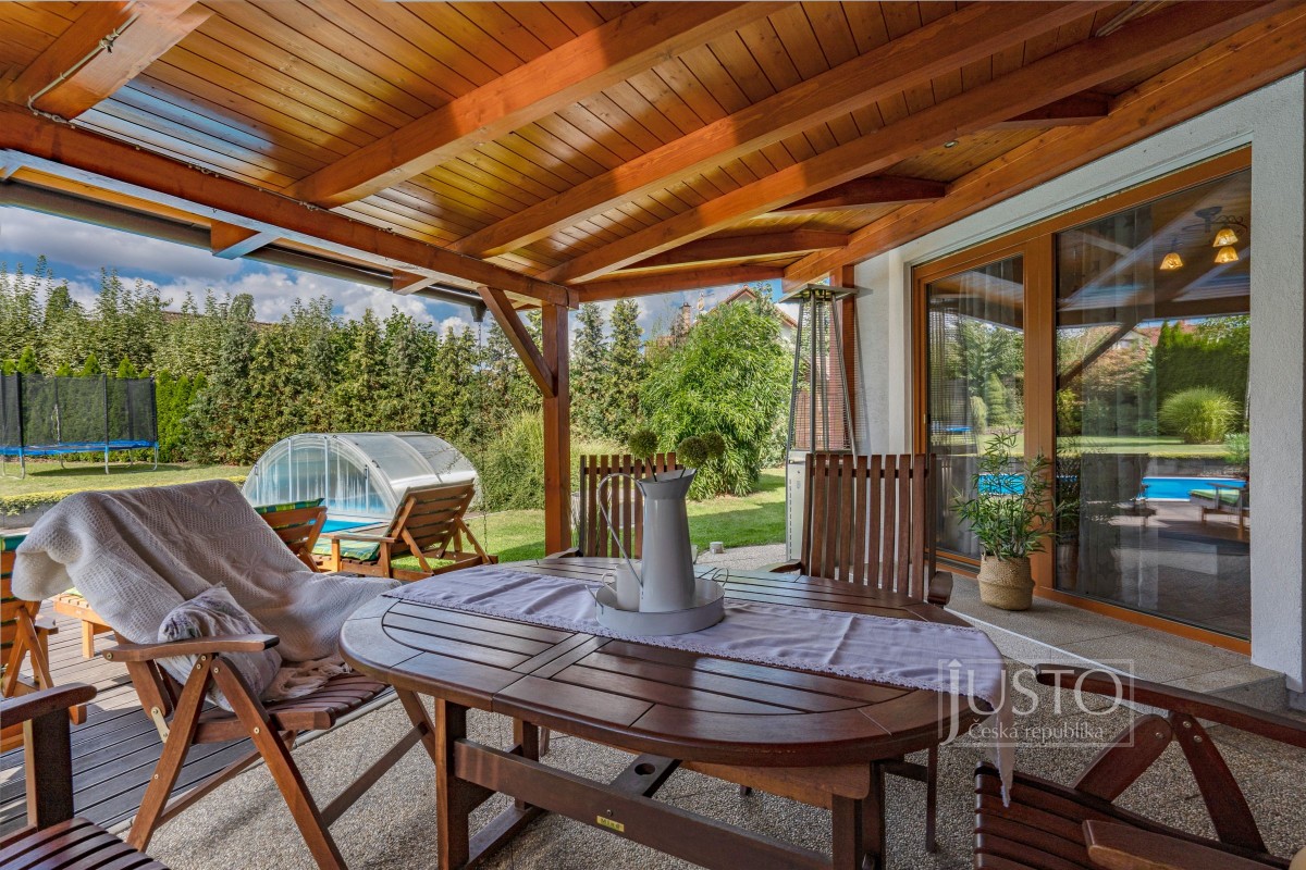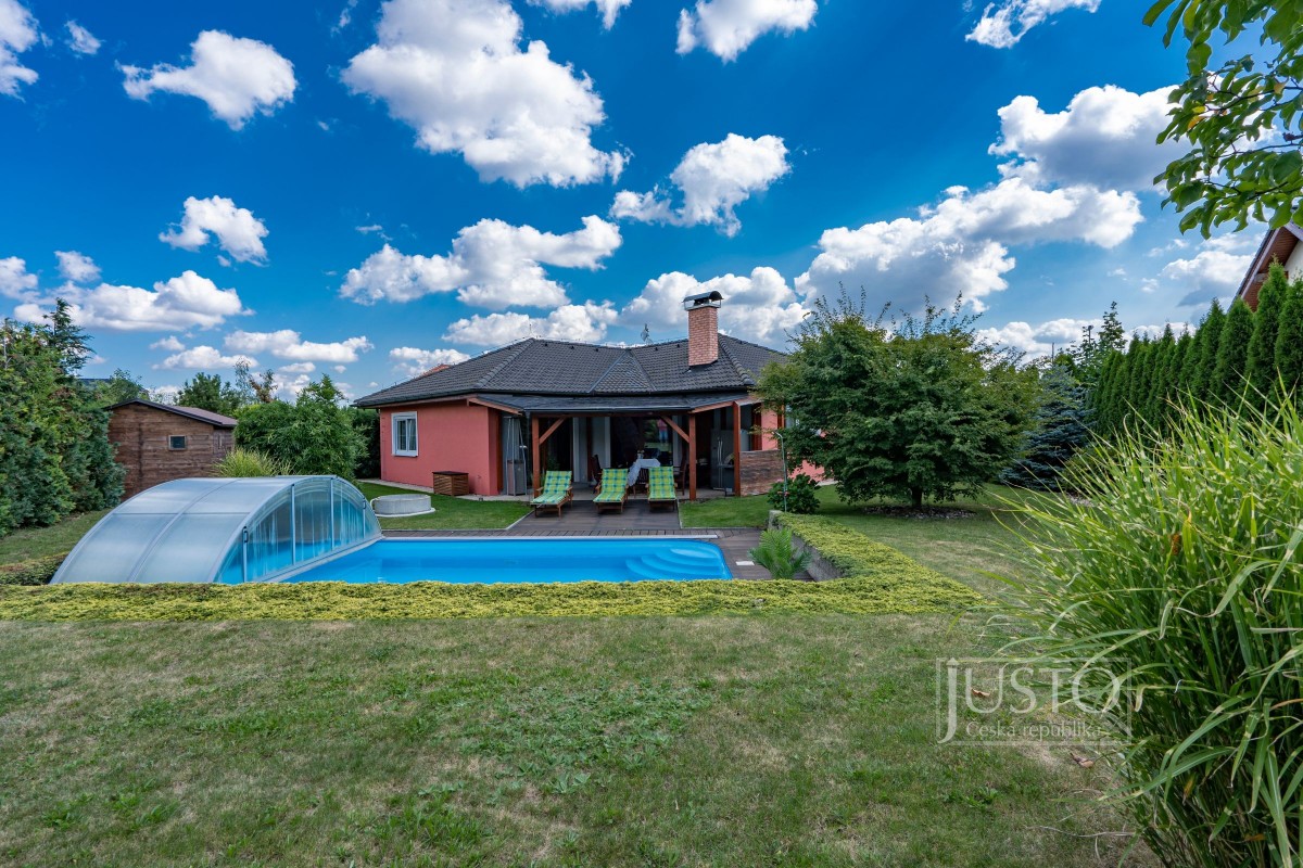 V zastoupení majitele nabízíme k prodeji rodinný dům o dispoziční řešení 4+kk v obci Buštěhrad, který byl kolaudován v roce 2007. Jedná se o samostatně stojící dům s garáží, v...enkovním posezením a krytým bazénem. Při vstupu do domu se nachází praktické zádveří, do kterého je vstup i z garáže. Všechny místnosti domu mají svůj vlastní vstup z centrální chodby domu. Hlavní obytnou místností je obývací pokoj, který je volně spojen s kuchyní, která je vybavena moderní, praktickou kuchyňskou linkou s ostrůvkem, dostatek úložného místa najdete ve spíži vedle kuchyně. Do obývacího pokoje se pohodlně vejde jídelní stůl. Velmi příjemný je bezbariérový vstup z obývacího pokoje na zastřešenou terasu, která volně navazuje na zahradu se zastřešeným bazénem. Soukromí a klid najdete v ložnicích, které jsou na druhé straně domu, jedná se o pracovnu 11, 8 m² a dětský pokoj o výměře 16 m². Ložnice o výměře 14 m² je se vstupem k bazénu. Koupelna o výměře 8, 2 m² je se sprchovým koutem, vanou, dvou umyvadlem a toaletou. Další toaleta pro hosty je zvlášť se vstupem z centrální chodby, v této místnosti je také přípojka pro pračku. Garáž je s vraty na dálkové ovládání s jedním parkovacím místem, další min. 3 parkovací stání jsou na pozemku za posuvnou branou. Na pečlivě udržované zahradě jsou vzrostlé stromy a keře, i díky nim zde naleznete absolutní soukromí. V zadní části zahrady je umístěn zahradní domek, který je vhodný pro skladování zahradní techniky, nábytku atd. Okna domu jsou opatřena před okenními žaluziemi. Vytápění je zajištěno plynovým kotlem - v celém dome je podlahové topení. V obývacím pokoji jsou navíc krbová kamna. Voda je z veřejného řádu, kanalizace obecní. Dům zůstane částečně zařízen, stěhování možné dle dohody cca od listopadu 2020.
