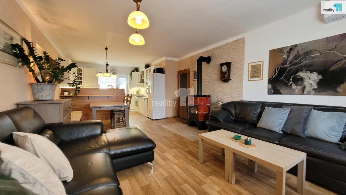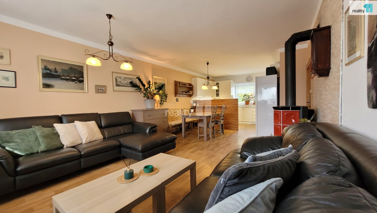 Cena je kompletní včetně právních služeb a provize RK. . Reality 11 Vám zprostředkují prodej moc hezkého rodinného domu s velkou zahradou, garáží a dílnou v obci Pertoltice, který se nachází ve starší, velice klidné zásta...vbě. Jedná se o jednu polovinu dvojdomu s dispozicí 5+kk. Nemovitost je po kompletní rekonstrukci, která proběhla v roce 2004. Dům je celý podsklepený, dispozice 1. NP (první nadzemní patro) je vstup, veranda 5, 1 m², spíž, chodba 7, 2 m², schodiště do sklepa a schodiště do 2. NP (druhé nadzemní patro), obývací pokoj s jídelnou a kuchyní 36 m² (zde jsou i krbová kamna), ložnice 14, 4 m², koupelna s vanou v boxu 5, 2 m² a sociální zařízení WC 1, 1 m². Ve 2. NP (druhé nadzemní patro) najdeme chodbu 8 m², tři pokoje o výměrách 18 m², 21, 4 m² a 17, 8 m², koupelnu se sprchovým boxem a sociální zařízení WC 4, 5 m² a po stahovacích schodech se dostaneme na půdu. Vytápění a ohřev teplé vody zajišťuje tepelné čerpadlo NIBE, které bylo instalované před třemi lety (celková spotřeba elektřiny za 12 měsíců je necelých 30 tis. Kč), v obou patrech je od loňského roku také klimatizace ACOND. Voda je z veřejného řadu, na zahradě je také 40 m hluboká vrtaná studna, odpad do čističky, která je na pozemku a provozuje ji obec. Dále se na pozemku nachází dřevěná stavba o celkové výměře 59 m², která je přístupná z ulice i ze zahrady a obsahuje garáž, sklad a altán, kde můžete příjemně relaxovat i za špatného počasí. Za domem je samostatná zděná dílna s komínem a kamny o výměře 31 m². Celková výměra pozemku činí 1145 m², zastavěná plocha domem je 111 m². Krásná zahrada o výměře 944 m² poskytne novým majitelům úžasný prostor pro relaxaci a odpočinek. V okolí Pertoltic je krásná příroda, lesy na houbaření, nedaleko je řeka Sázava a také vodní nádrž Švihov. Obec provozuje prodejnu smíšeného zboží a jeden den v týdnu hospodu. Kompletní občanskou vybavenost najdete v nedaleké Zruči nad Sázavou. Doprava BUS, 3 km od domu je také zastávka PID s přímým spojením do Prahy, vlakové spojení ČD je ve Zruči nad Sázavou. Dostupnost vozem: D1 10 min. , Praha 40 min. , Benešov 35 min. , Čáslav 27 min. , Kutná Hora 25 min. V případě potřeby Vám nabízíme zdarma velice výhodné financování. Doporučuji vřele prohlídku této nemovitosti. Ev. číslo: 26854. Energetický štítek: D (143 kWh/m2/rok).