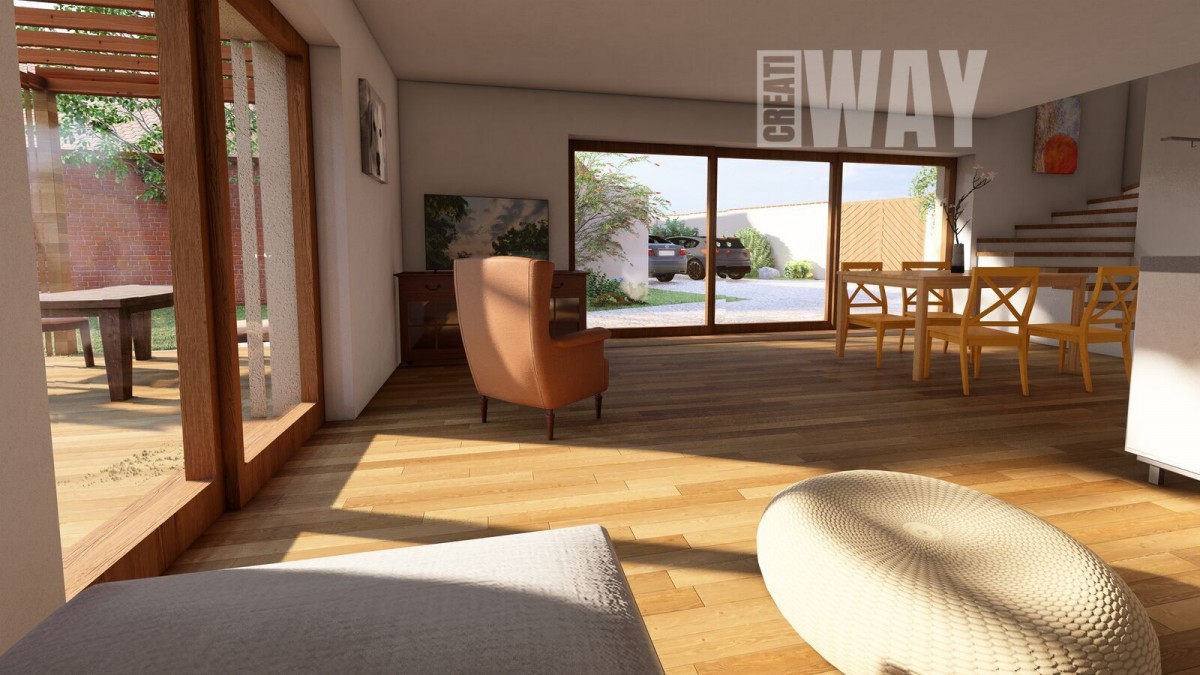 Stavba je navržena Ing. arch. Jitkou Beckovou přímo na míru na tento pozemek a součástí nabídky je kompletní výstavba na klíč dle projektu. Samozřejmostí je možnost klientských změn dle vašich představ a to jak dispozičních, tak v rámci dekorů povrchových materiálů.