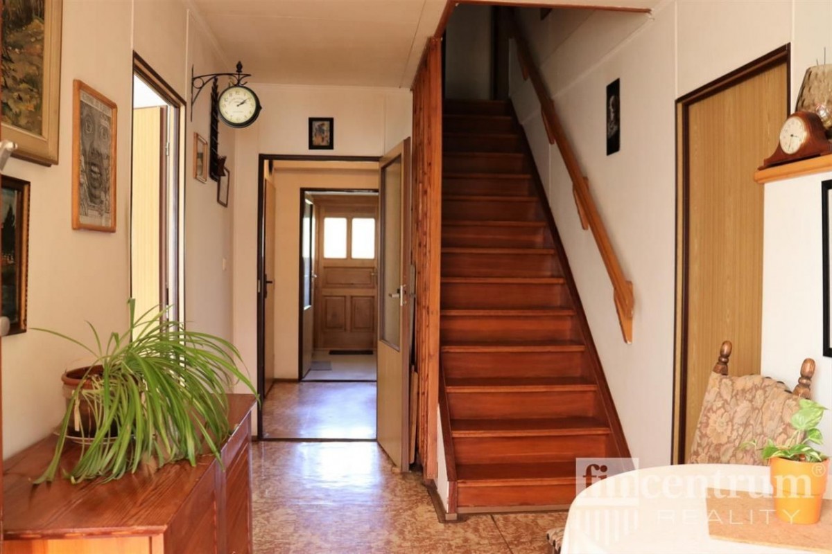 Pojďme se podívat do domu. Vstupujeme do zádveří, dále do síňky, z níž vedou dveře do kotelny s funkčním kotlem na tuhá paliva a s nově vyvložkovaným komínem. Dále do koupelny se sprchovým koutem, s bidetem a s toaletou. Také můžeme vejít do příjemně barevně laděné kuchyně s kuchyňskou linkou z masivu, která zůstane součástí vybavení domu a z ní do útulného obývacího pokoje. Další dveře nás vedou do malé haly, z níž vstoupíme do nevelké ložnice, poté vystoupáme do prvního poschodí, kde je byt 3+1. Z kuchyně vcházíme do vzdušného obývacího pokoje a dále do ložnice. Koupelna, kde je také okno, je s vanou a s toaletou. Téměř prázdná půda je vhodná k vybudování dalšího zajímavého prostoru.