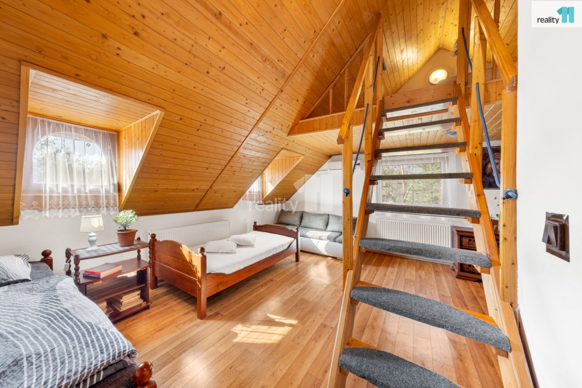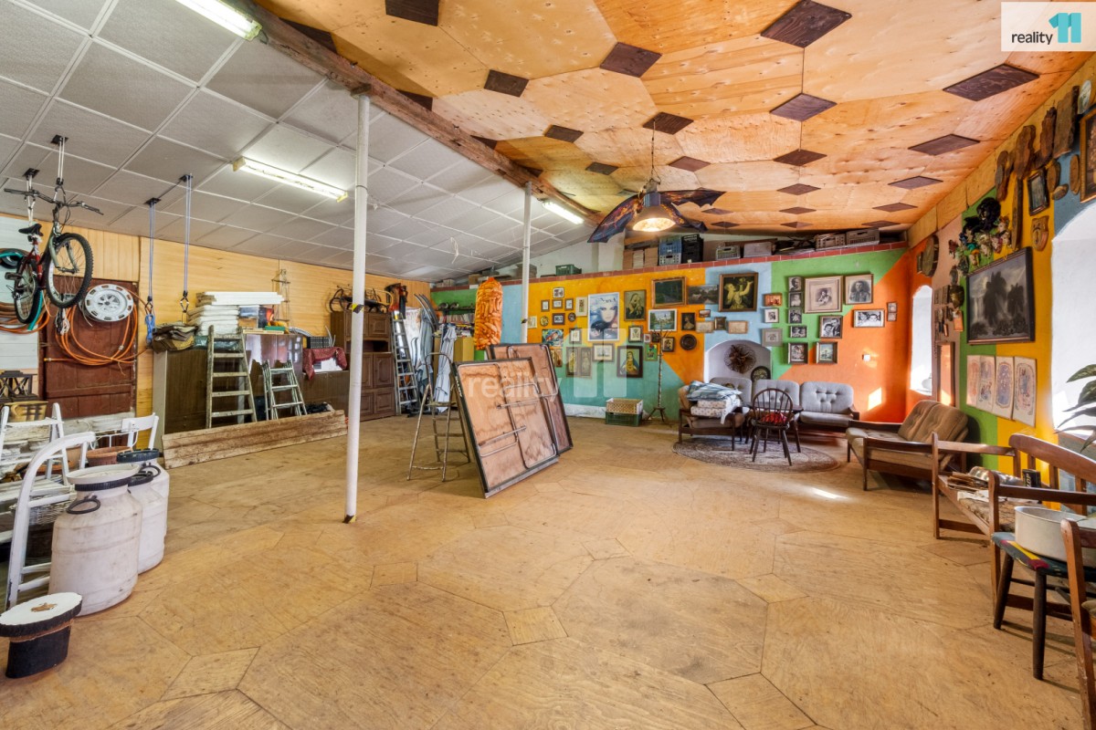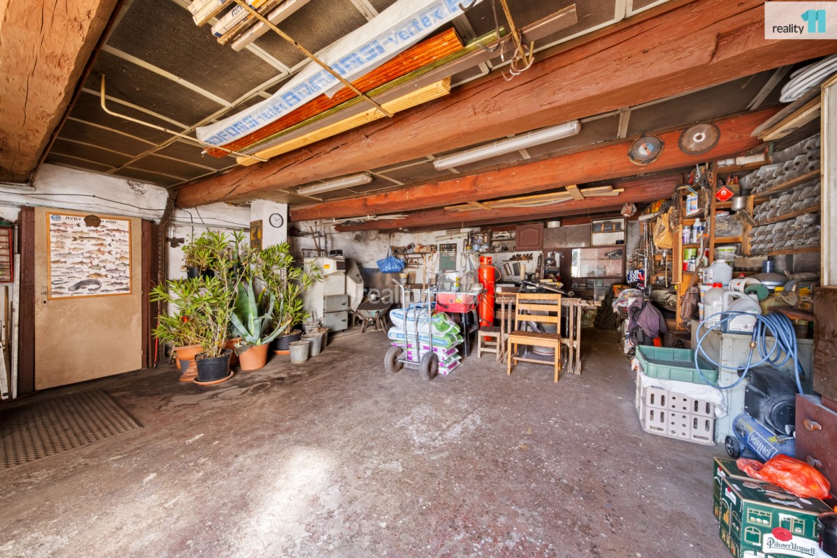 Na dům navazuje původní špejchar, který nabízí potenciál pro další rozšíření obytných prostor. Pod ním je velkorysá dílna, uhelna a stylová „pánská klubovna" v retro stylu.