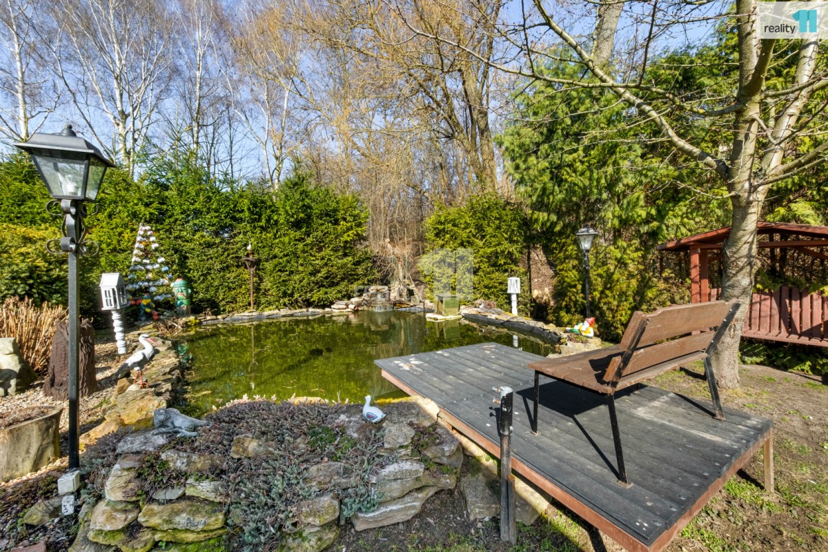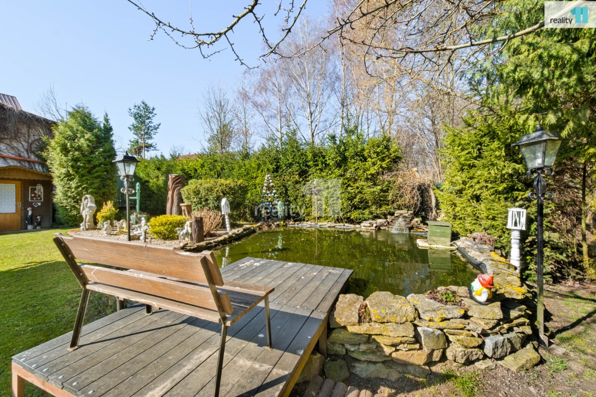 To, co vás však naprosto uchvátí, je venkovní prostor. Zahrada a okolí domu jsou neskutečně pečlivě udržovány a nabízí klid a soukromí. Majitelé zde vybudovali doslova soukromý ráj plný romantických zákoutí s okrasnými keři a květinami. Najdete zde jezírko s vodopádem, bazén 7 krát 3 m pro horké letní dny, pergolu s posezením, zahradní domek i několik romantických posezení s lavičkami.