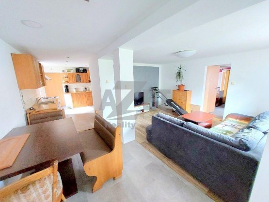 Dispozičně je řešen jako 3+1... s možnosti vybudovaní dalších místnosti. Dispozičně řešený: vstupní chodba, kuchyň a tři samostatné pokoje. Dále je tu koupelna s rohovou vanou a toaletou. V kuchyni, chodbě a koupelně dlažba, obývací pokoj a ložnice PVC, v dětským pokoji plovoucí podlaha. Součástí domu je hospodářská budova na uskladnění potřebných věci a také pro přípravu paliva na topení nebo dílna. Vytápění je zajištěno kotlem na tuhá paliva, plyn zaveden na pozemku, voda obecni, ohřev vody je řešen bojlerem. Odpad je sveden do kanalizace. Střecha je sedlová eternit.