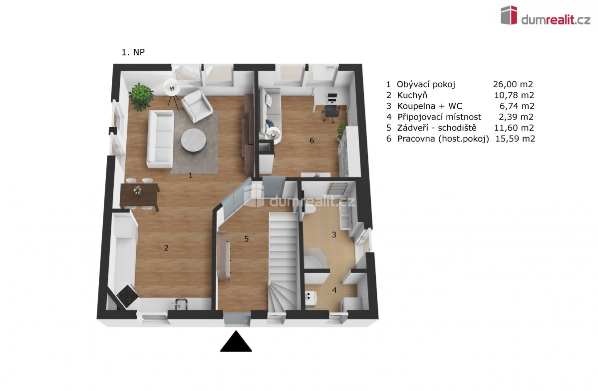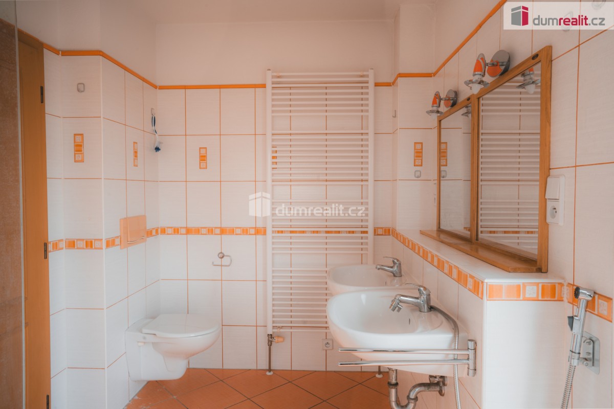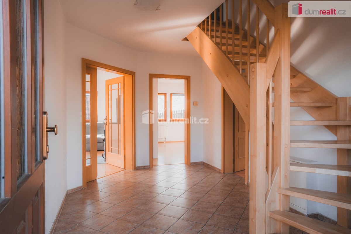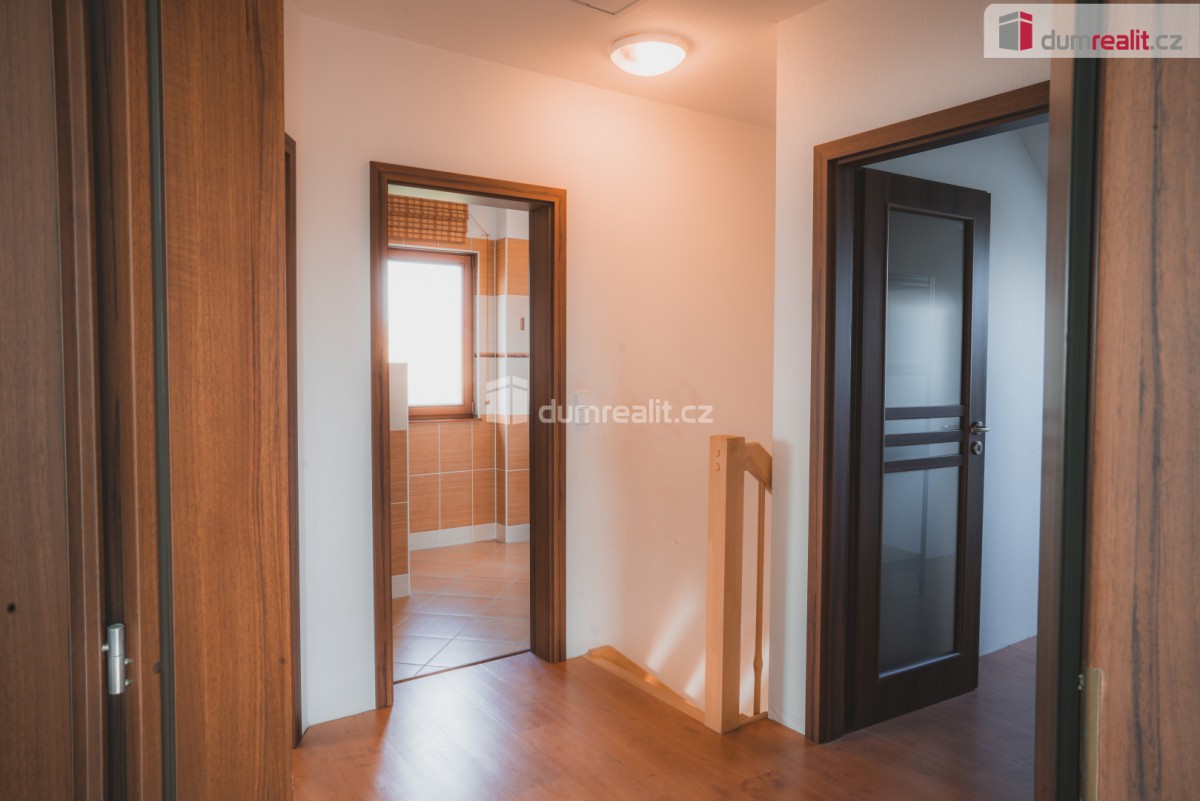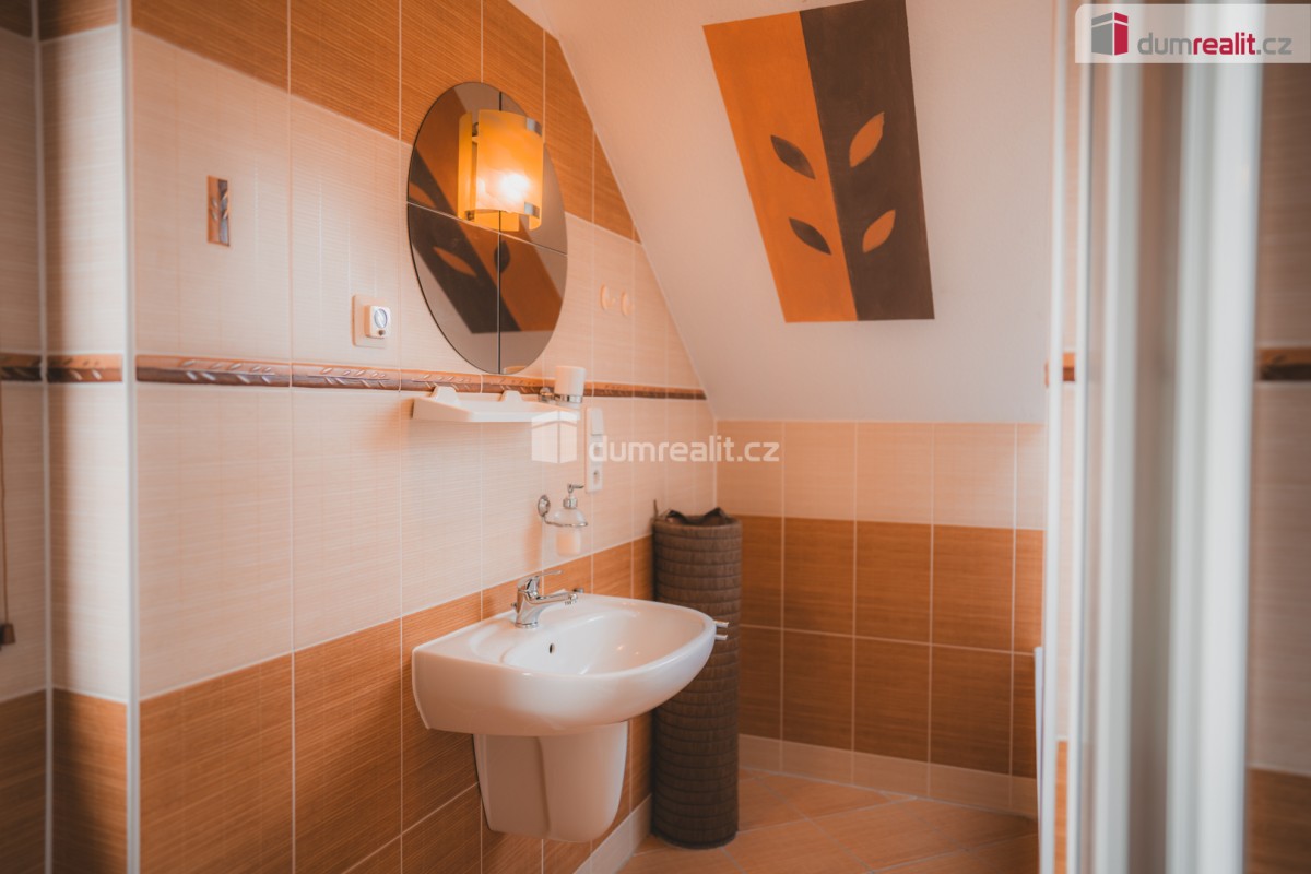 uvedená cena zahrnuje právní servis a odměnu RK. Dumrealit. cz Vám nabízí prodej útulného, rodinného domu v klidné vilové čtvrti v Turkovicích u Ondřejova, Praha - Východ. Nemovitost se nachází na vlastním pozemku o vým...ěře 1. 823m² z čehož 83m² je zastaveno domem a 34 m² garáží. Jedná se o patrovou dřevostavbu, dispozičně 5+KK, postavenou v r. 2007. V přízemí domu se nachází kuchyň s obývacím pokojem, pracovna, koupelna se sprchovým koutem, umyvadlem, toaletou a technickým zázemím. Z chodby vede dřevěné schodiště do patra, kde jsou 3 ložnice, komora, koupelna s vanou, sprchovým koutem, umyvadlem a toaletou, všechny místnosti mají samostatné vstupy. Zdroj vody - studna a obecní vodovod, odpady svedeny do jímky (objem cca 10 kubíků), připravená přípojka na kanalizaci. Vytápění zajištuje elektrokotel, s kombinací teplovodních krbových kamen v obývacím pokoji. V přízemí převažuje podlahové vytápění, pracovna a ložnice v patře osazeny radiátory. Měsíční náklad na elektřinu činí 3. 000 Kč. Okna dřevěná EURO s dvojskly. V domě je zavedený internetové připojení a TV připojení též za velmi nízké náklady. Na zahradě zabudovaná nádoba na sběr dešťové vody. Na pozemku stojí garáž, kde je rozvod elektřiny 220 a 380V. Pozemek je mírně svažitý, osázený dřevinami, přístupný ze dvou ulic. Výborné spojení na Prahu PID nebo autem 30 min. do centra, vlaková zastávka v Senohrabech (pouhé 4 km od domu), Benešov je vzdálen 20 km, Říčany 15 km. V obci je k dispozici pošta, MŠ, ZŠ, obchody s potravinami, smíšeným zbožím a oděvy, cukrárna, pekárna, hostinec, kadeřnictví. Pro více informací volejte na uvedené telefonní číslo. Rádi pomůžeme se zajištěním financování. Doporučuji osobní prohlídku! Ev. číslo: 623552. Energetický štítek: F (180 kWh/m2/rok).